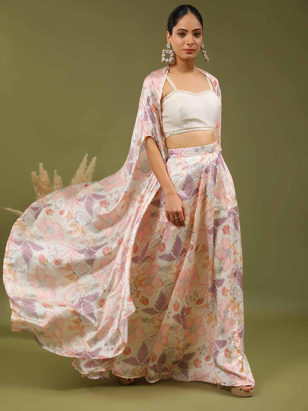 Even though engagement ceremonies are not a very large function, you can use them as an excuse to play matches with your besties. Dress elegantly with the Floral Silk Lehenga. This lehenga comes in an off-white floral set of three and the strappy top has a sweetheart neckline that will speak volumes about your look and style. Slay at every occasion with this look paired with the right accessories and be fashion-forward always.
