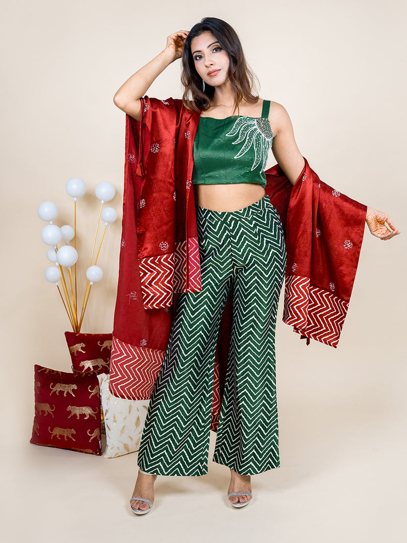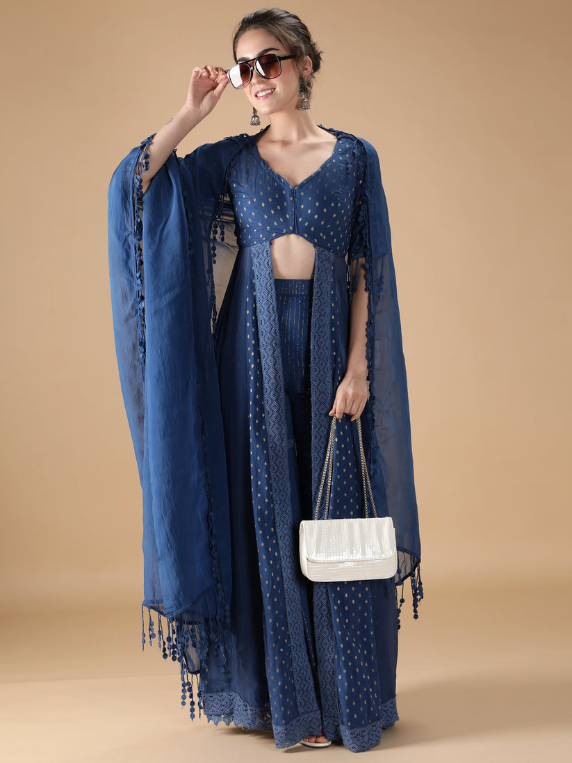 Fusion Vibe: Favor fusion wear in tune with the ongoing trends is convenient to wear and manage and is adaptable for numerous occasions. You can even pair the separates of the indo western suit and palazzo crop top jackets differently to create a new trendy mix-and-match ensemble.
