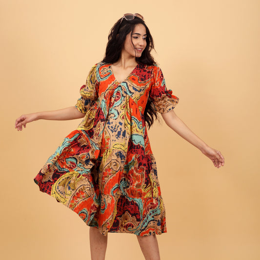Dawn Pink & Orange Silk Kaftan Style Dress with Inner