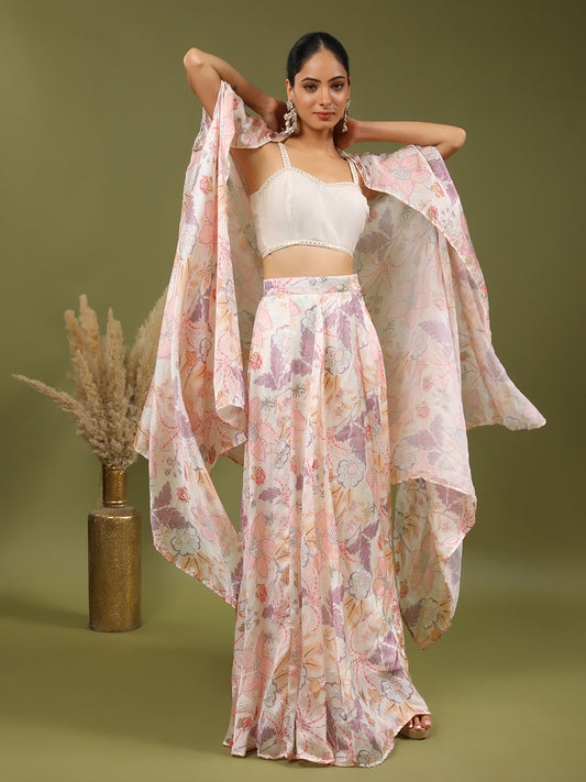 Dazzling Floral Silk Three Piece Lehenga Set with Embroidered Lace Top
