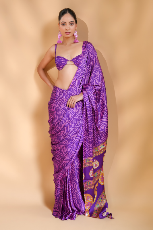 Luxurious Embroidered Pre-Draped Saree with Blouse Fabric