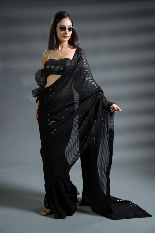 Ravishing Black Ready to Wear Sequin Saree and Blouse Fabric