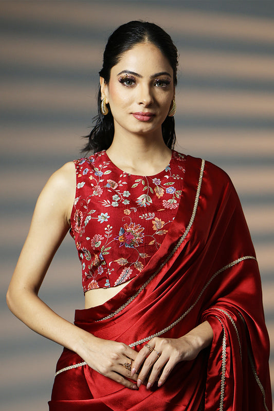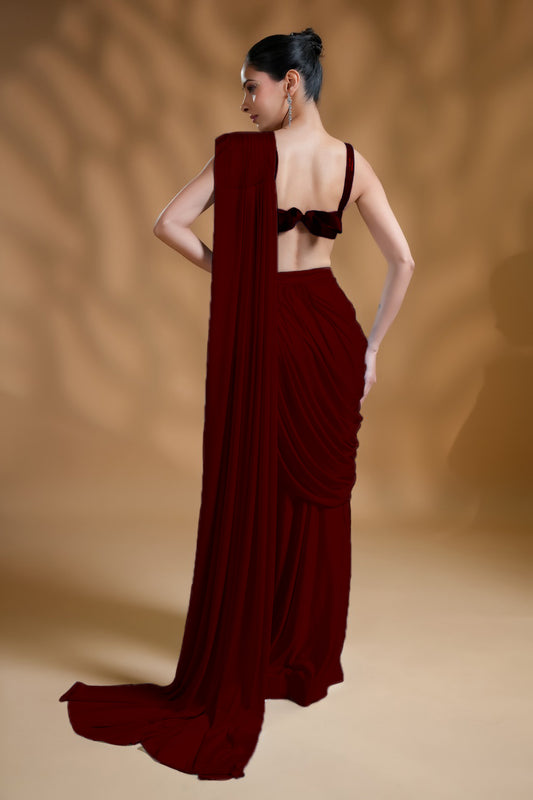 Premium Designer Red Ready-to-Wear Saree with Unique Drape in Luxe Fabric