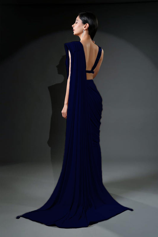 Exclusive Designer Navy Blue Ready-to-Wear Saree with Unique Drape in Luxe Fabric