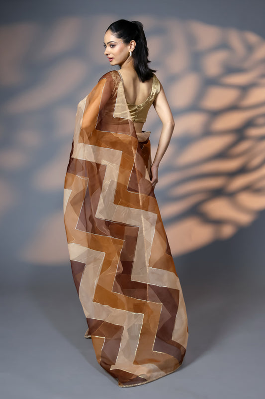 Chandni Bagh Organza Saree with Golden Detailing and Blouse Fabric