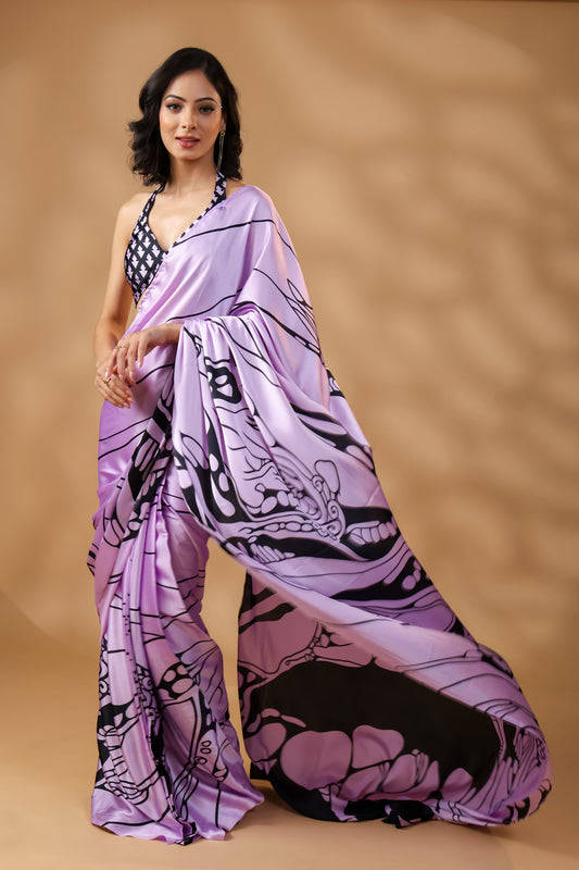 Dreamy Lavender Premium Satin Saree with Unstitched Blouse