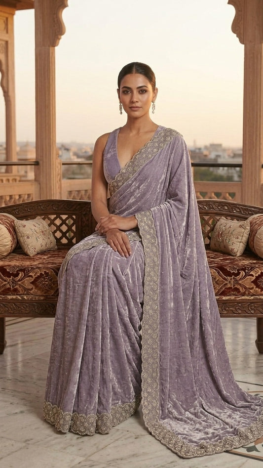 Dreamy Lavender Jimmy Choo Embellished Saree
