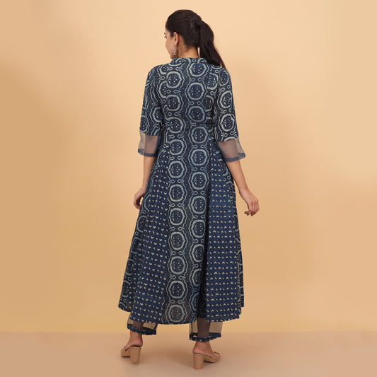 Regal Rust Pure Silk Chanderi Anarkali Ensemble (Set of 3)