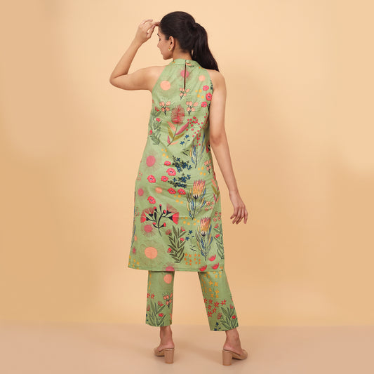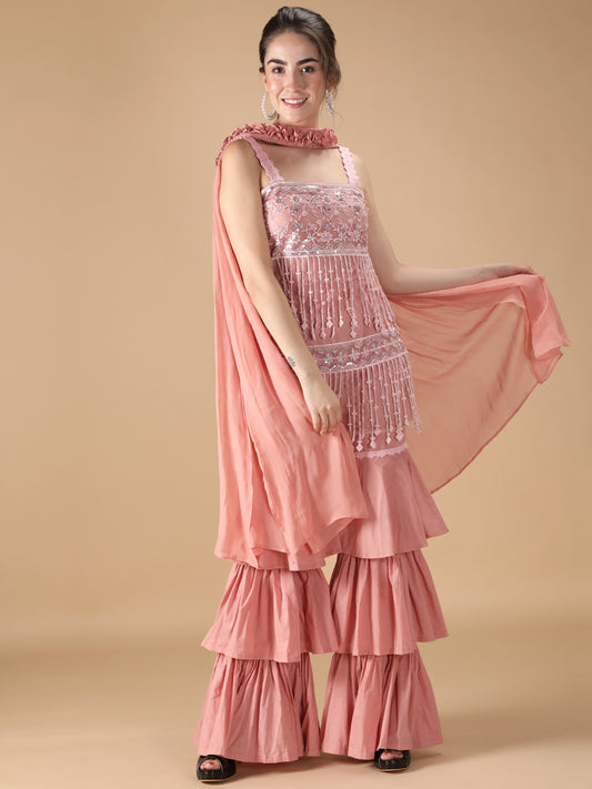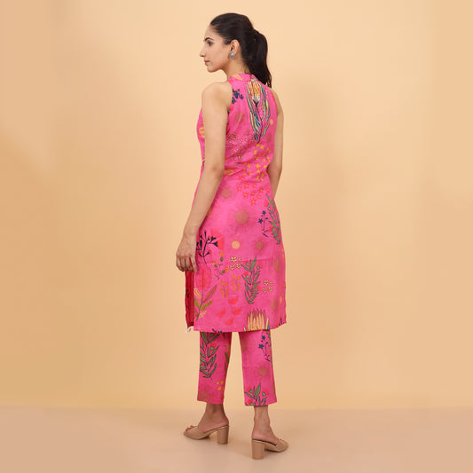 Peach Sleeveless Chikankari Embroidered Kurta & Pant Set
