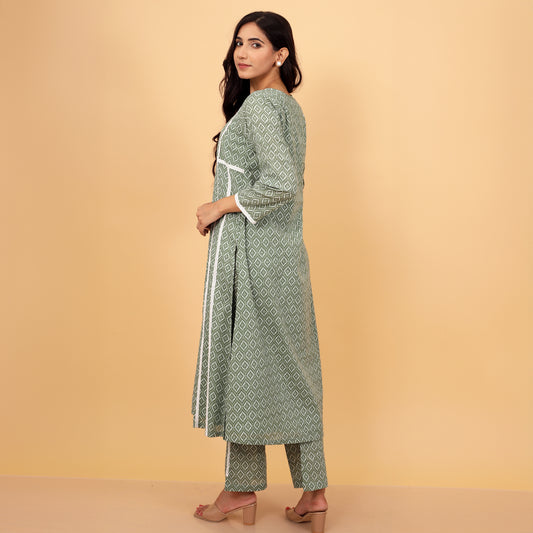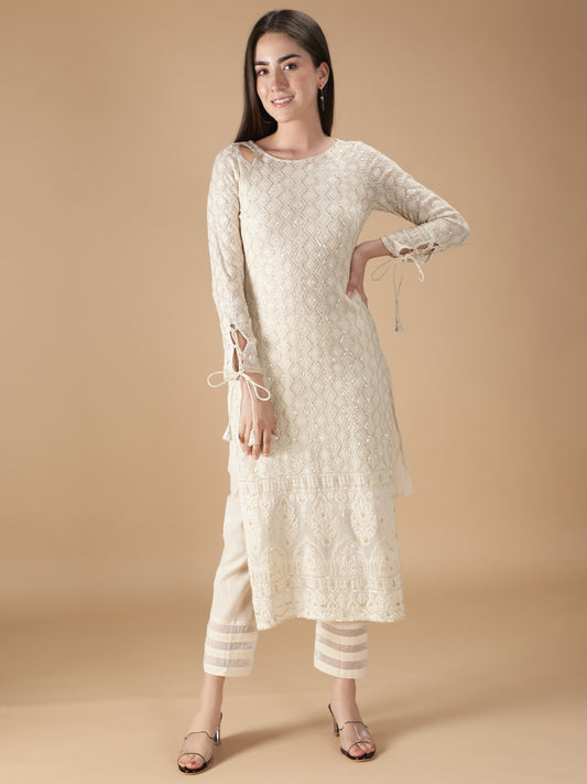Dazzling Cotton Embroidered Kurta & Pant Set with Dori work