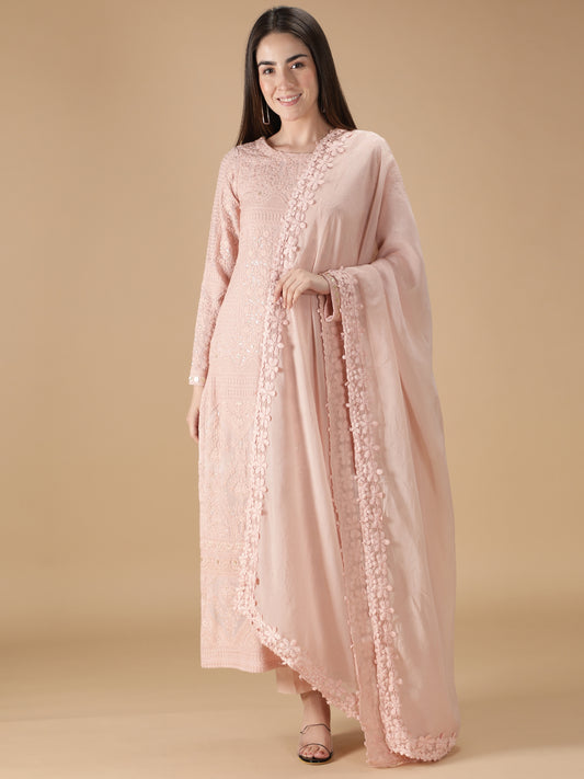 Luxurious Sequins Chikankari Anarkali with Dupatta & Belt