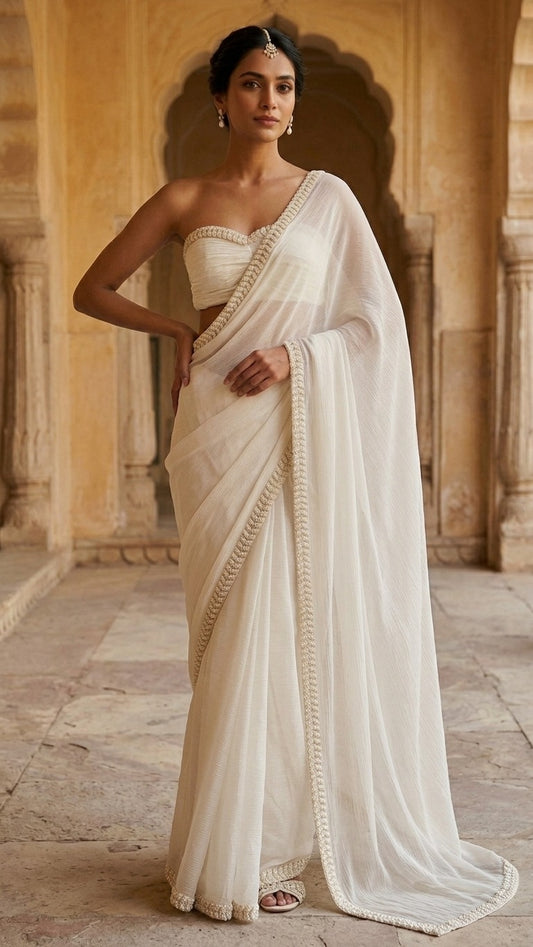 15% OFFLuxe Crushed Chiffon White Saree