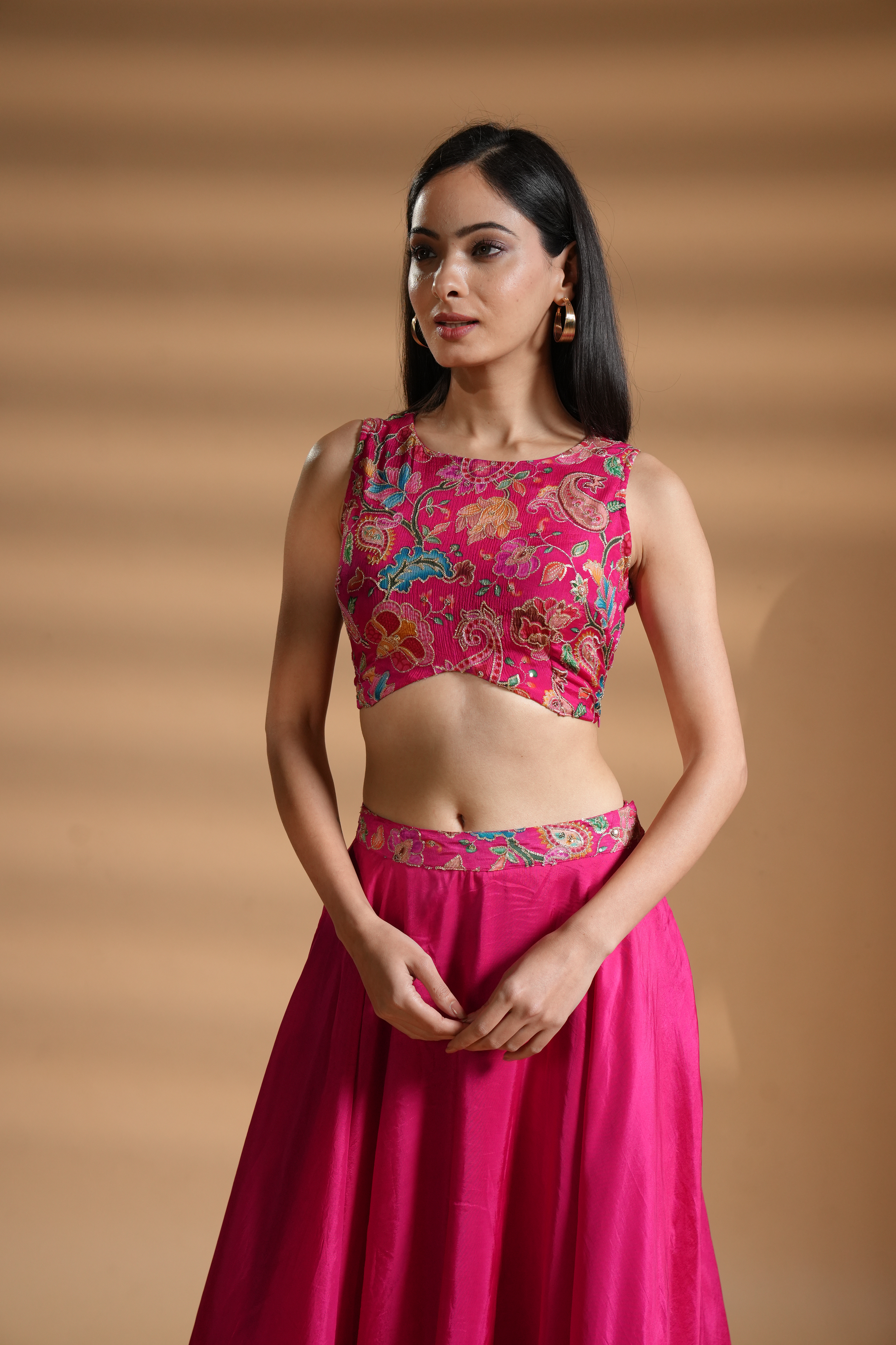 Azalea Pink Floral Embroidered Silk Skirt Set