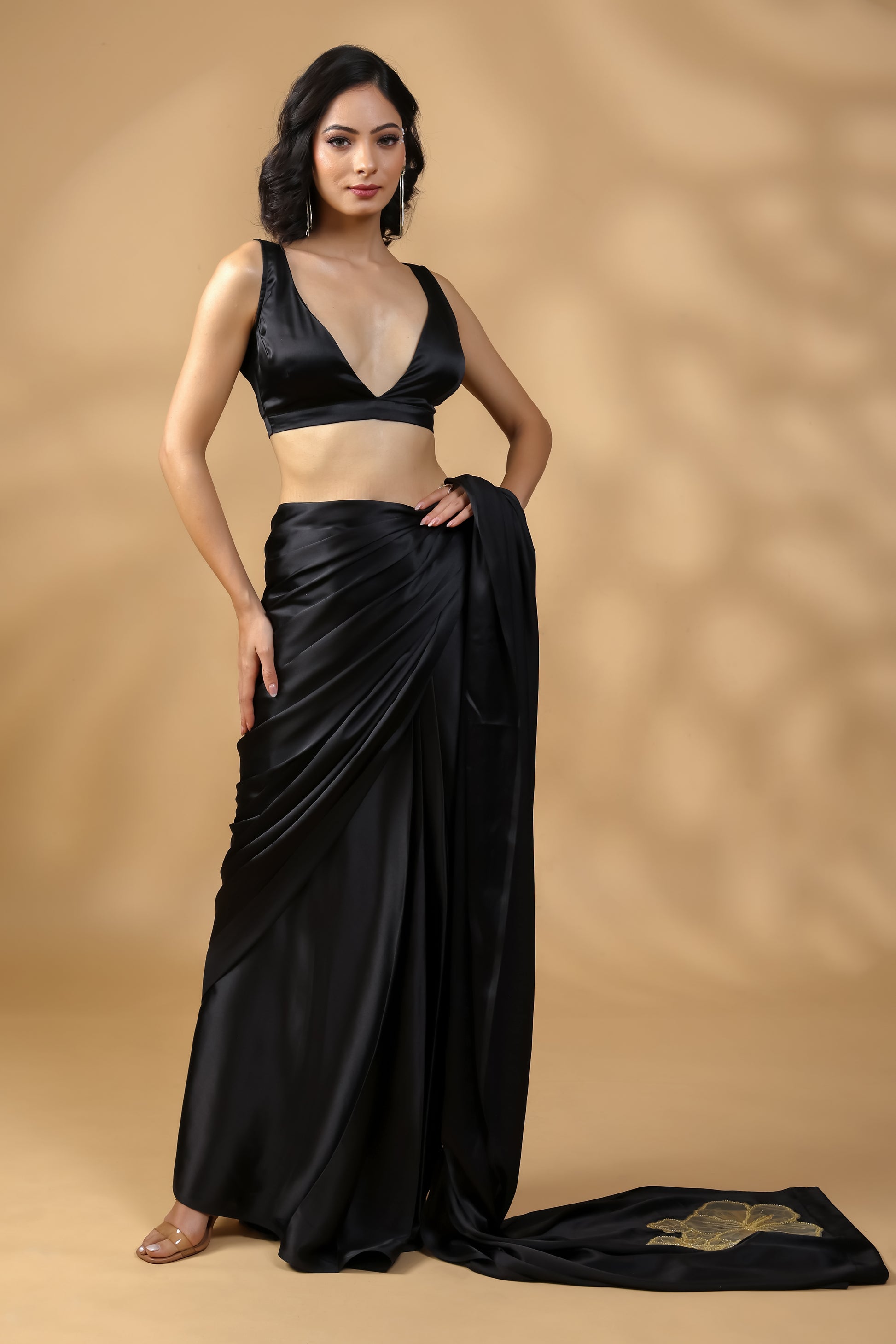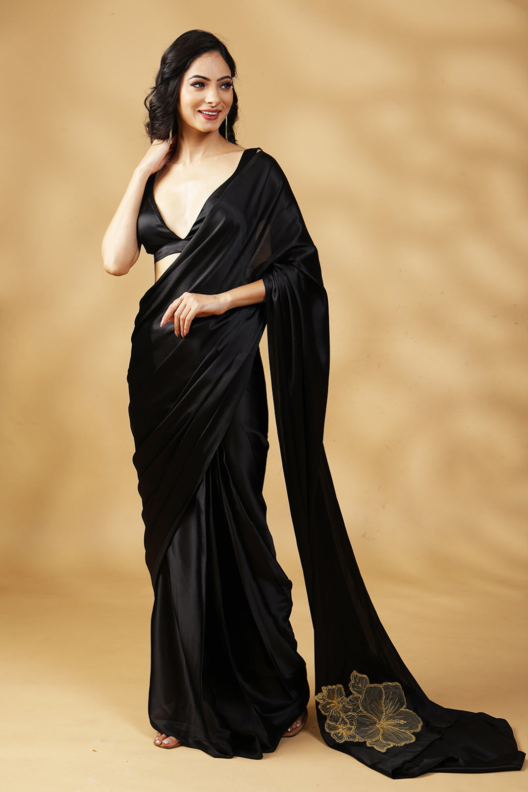 Black Beauty Golden Embroidered Saree with Blouse Fabric
