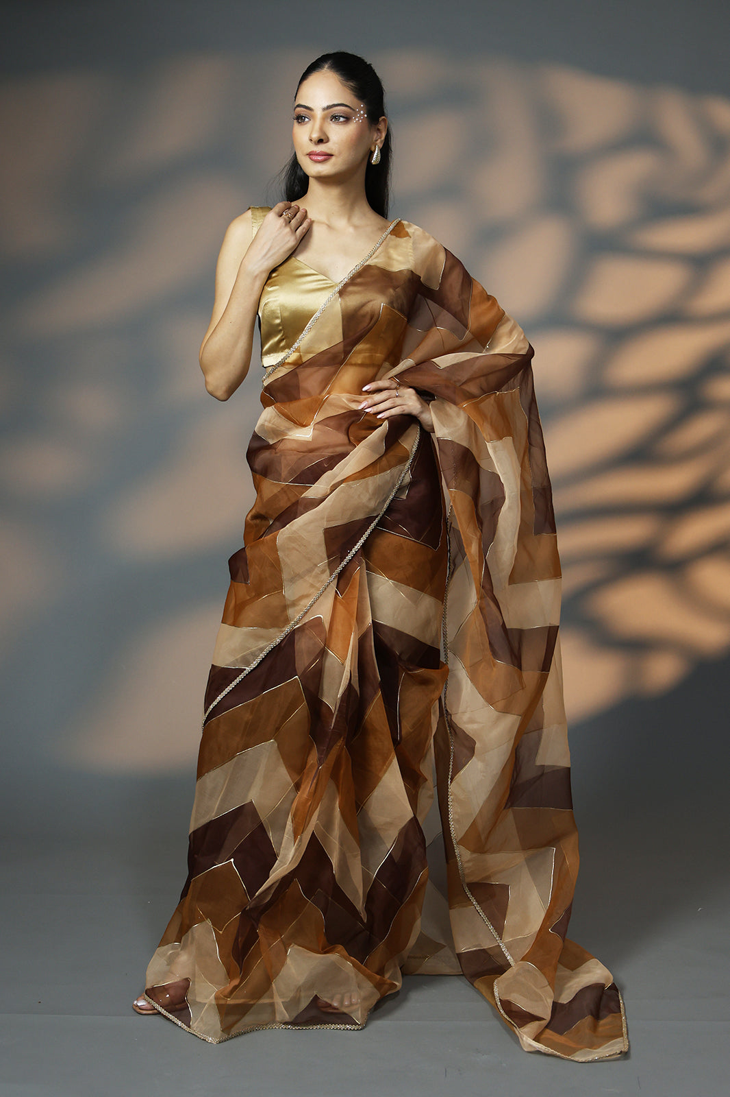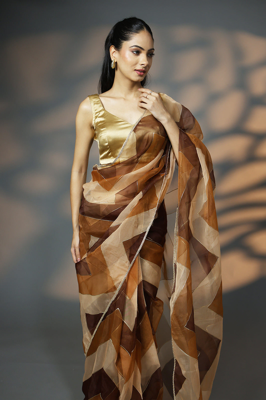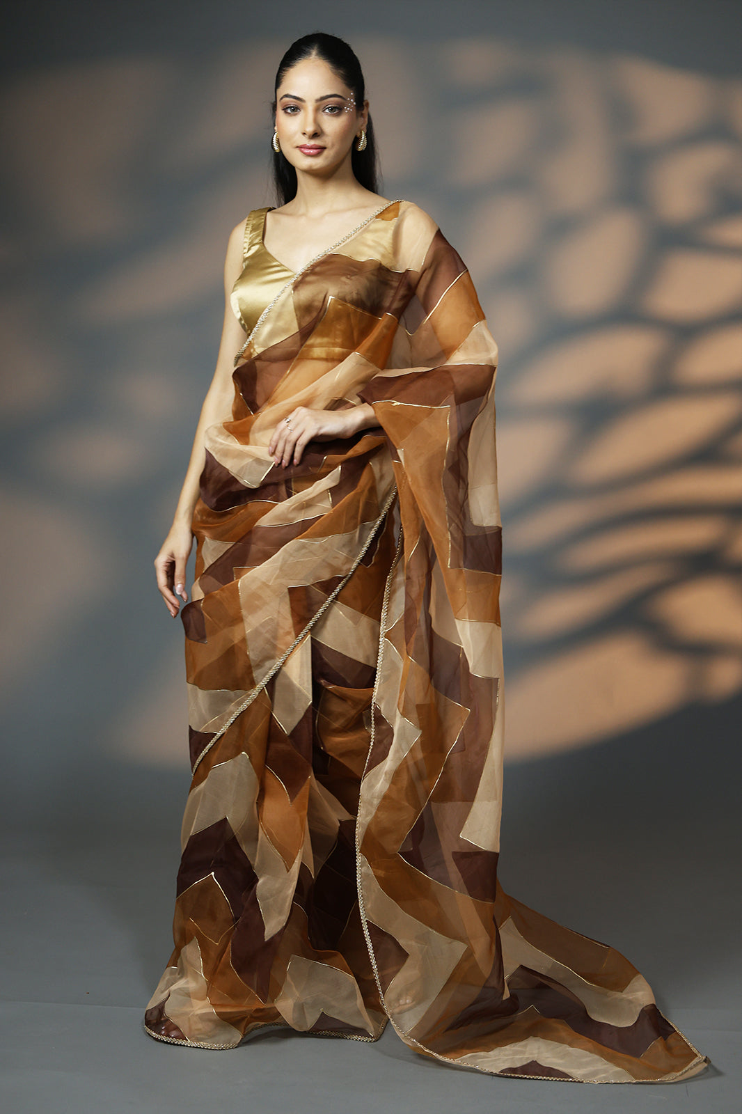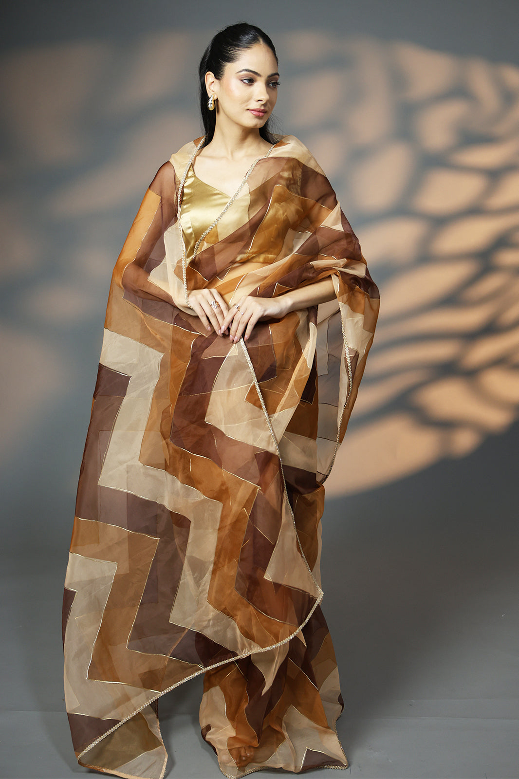 Chandni Bagh Organza Saree with Golden Detailing and Blouse Fabric