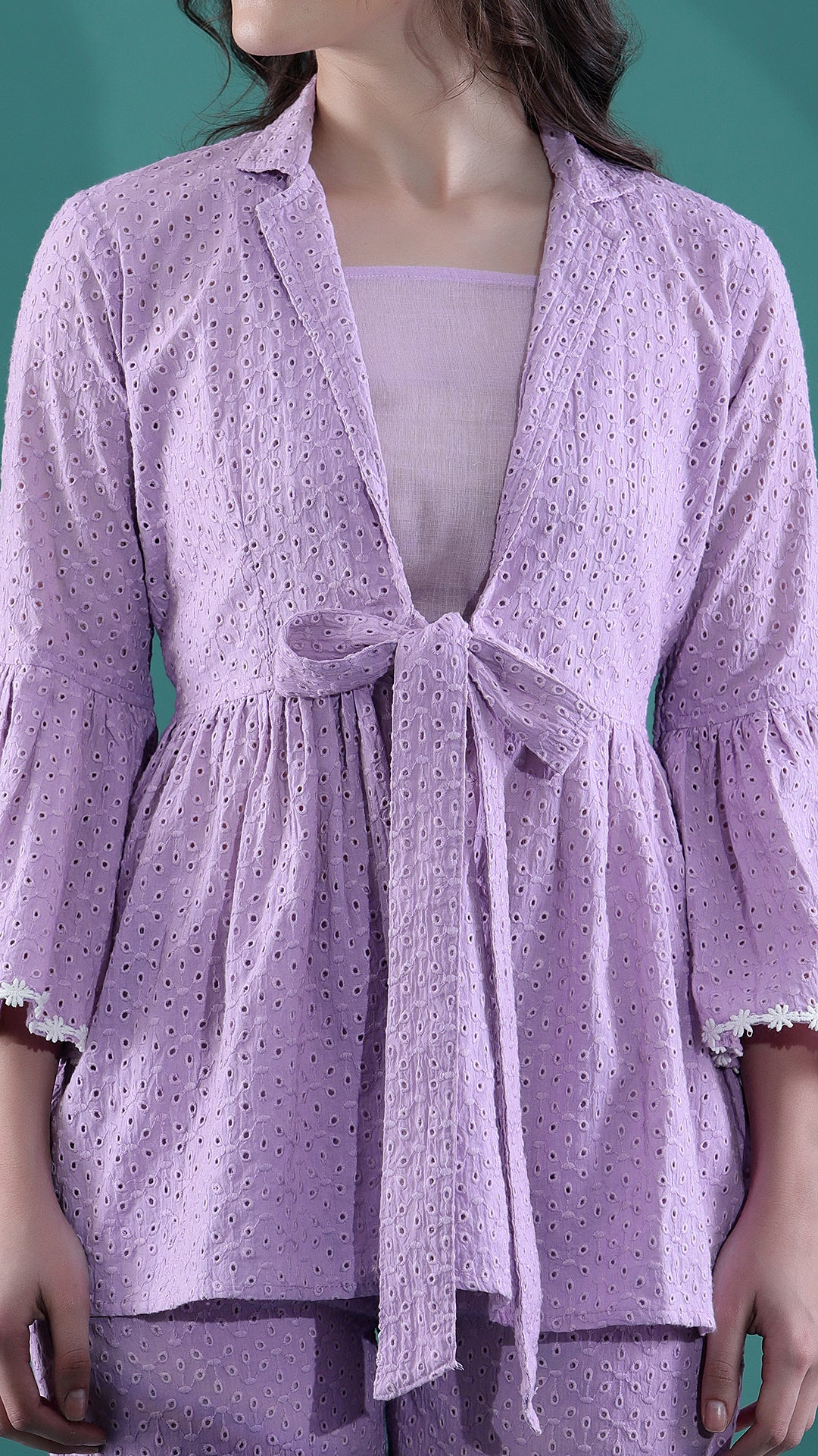 Lavender Wrap Style Embroidered Coord Set (Set of 3)