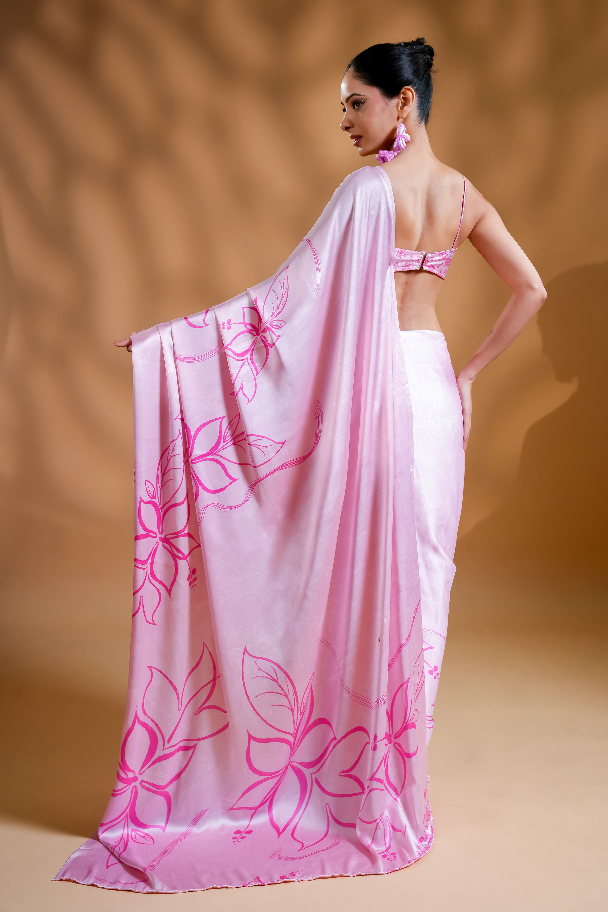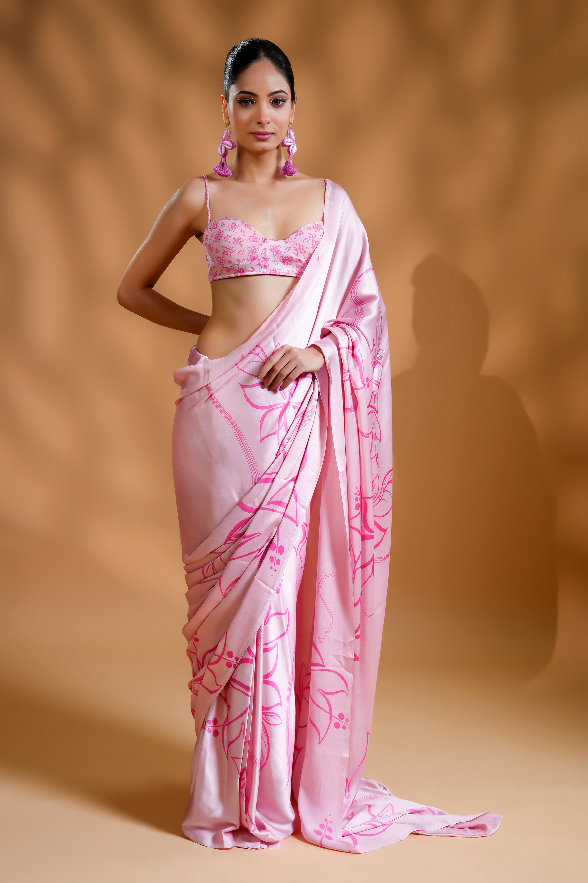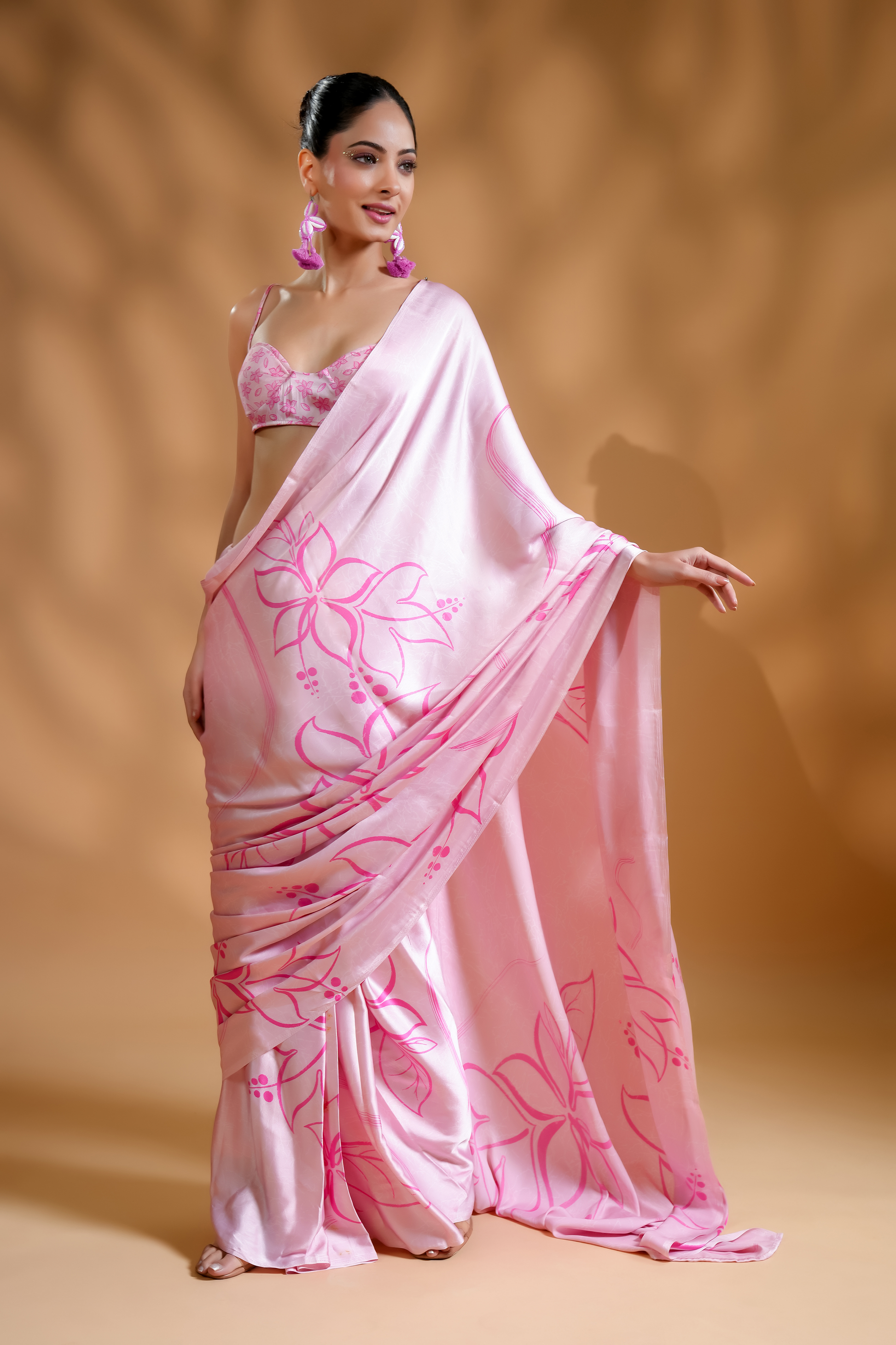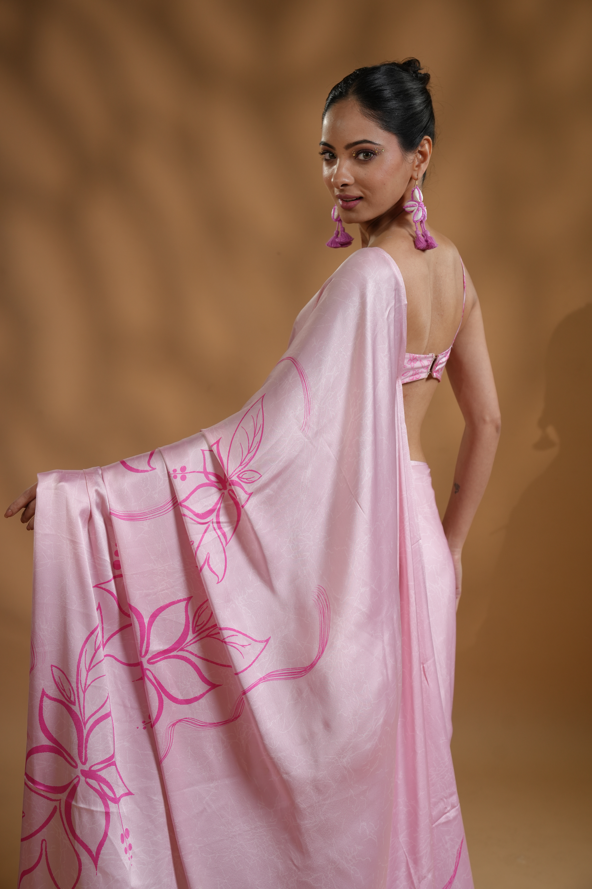 Luxe Premium Satin Pink Saree and Blouse Fabric
