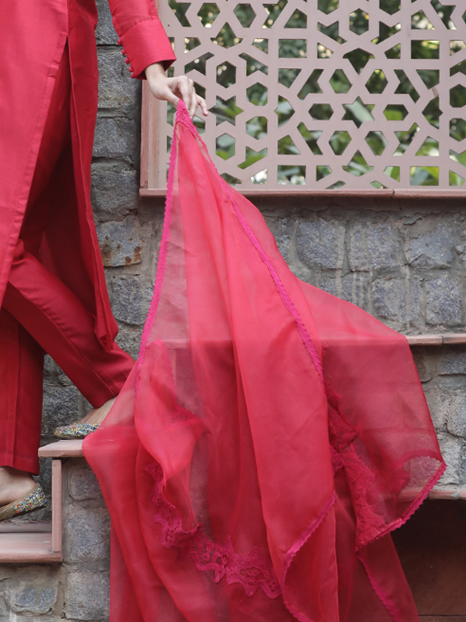 Fabric: Pure silk organza beautified with pure cotton embroidered lace all over the dupatta