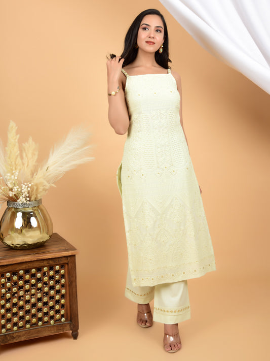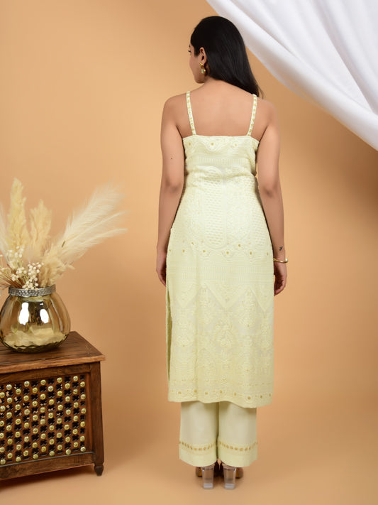 Pista Green Sleeveless Chikankari Kurta & Pant (set of 2)
