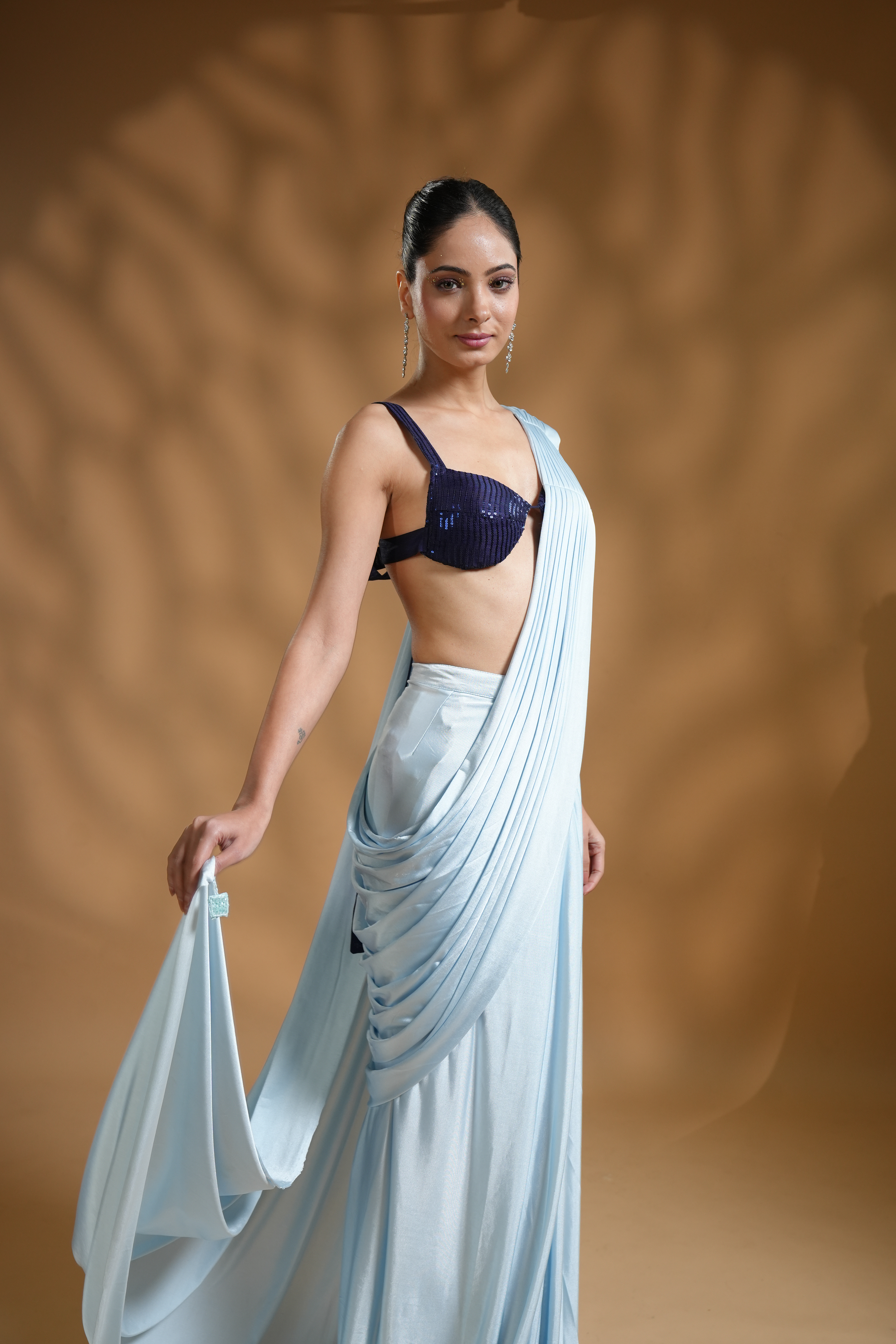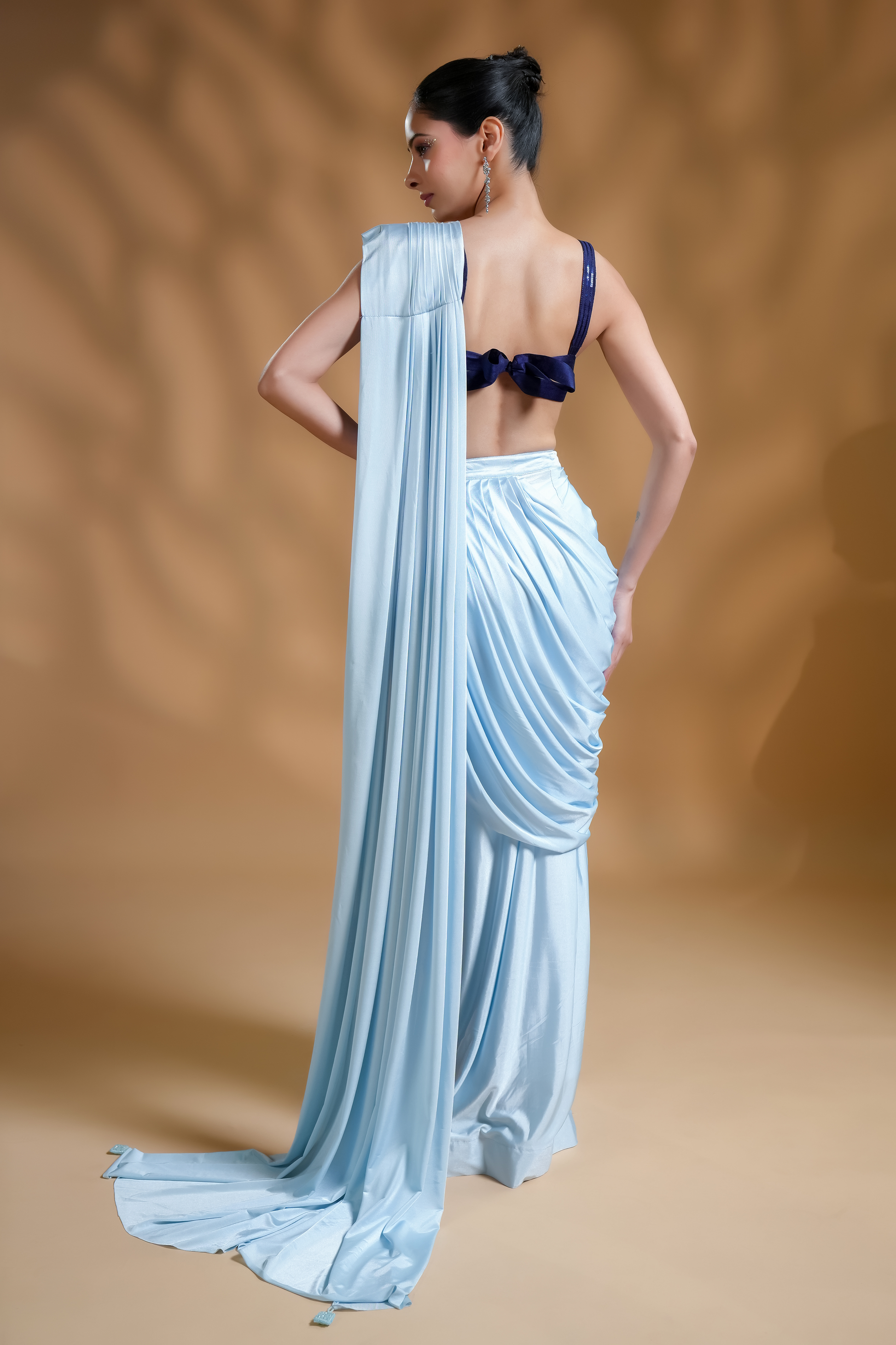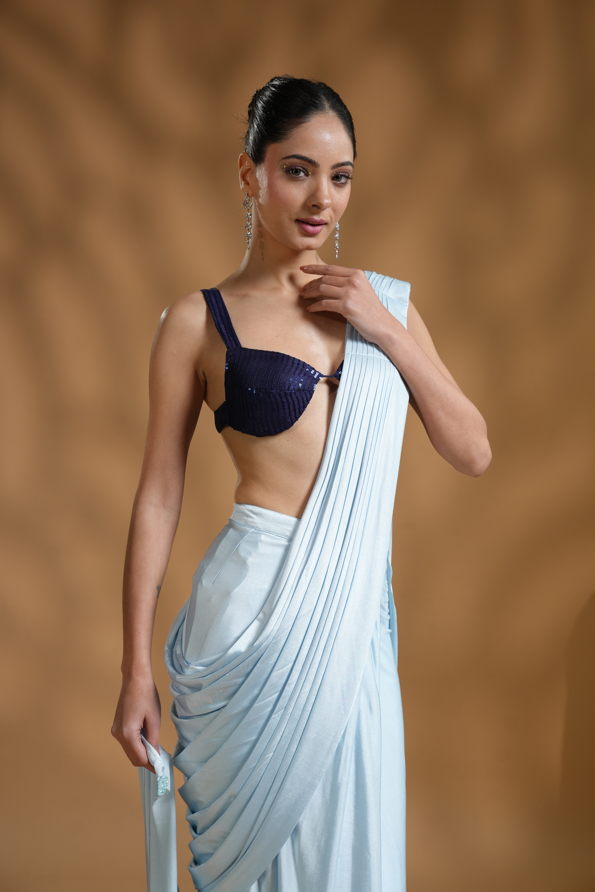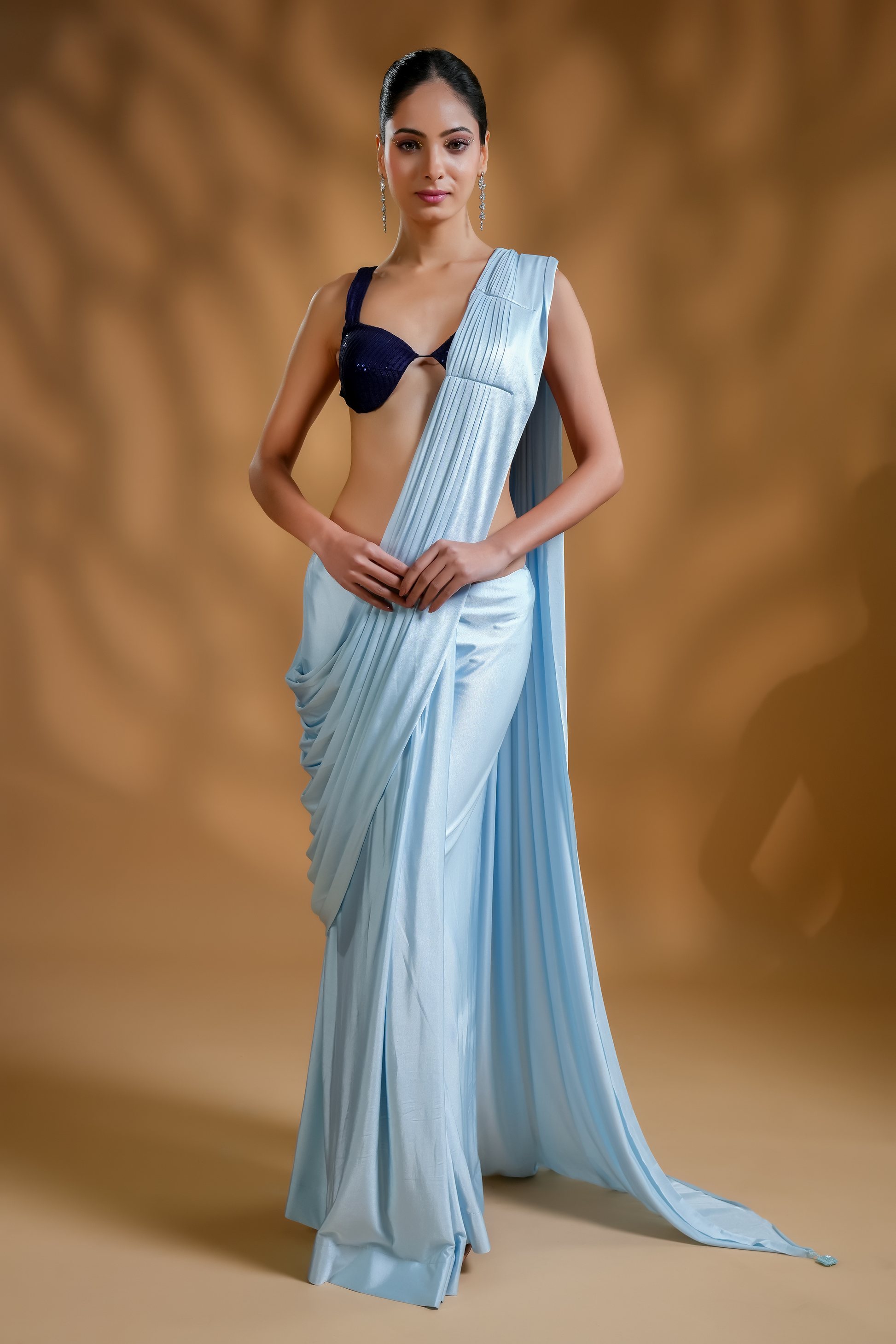 Premium Designer Blue Ready-to-Wear Saree with Unique Drape in Luxe Fabric