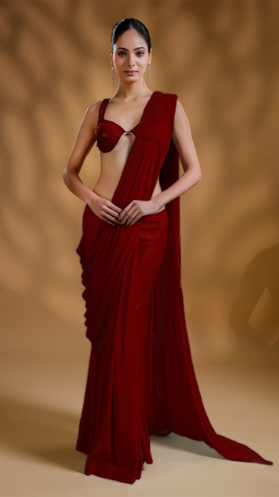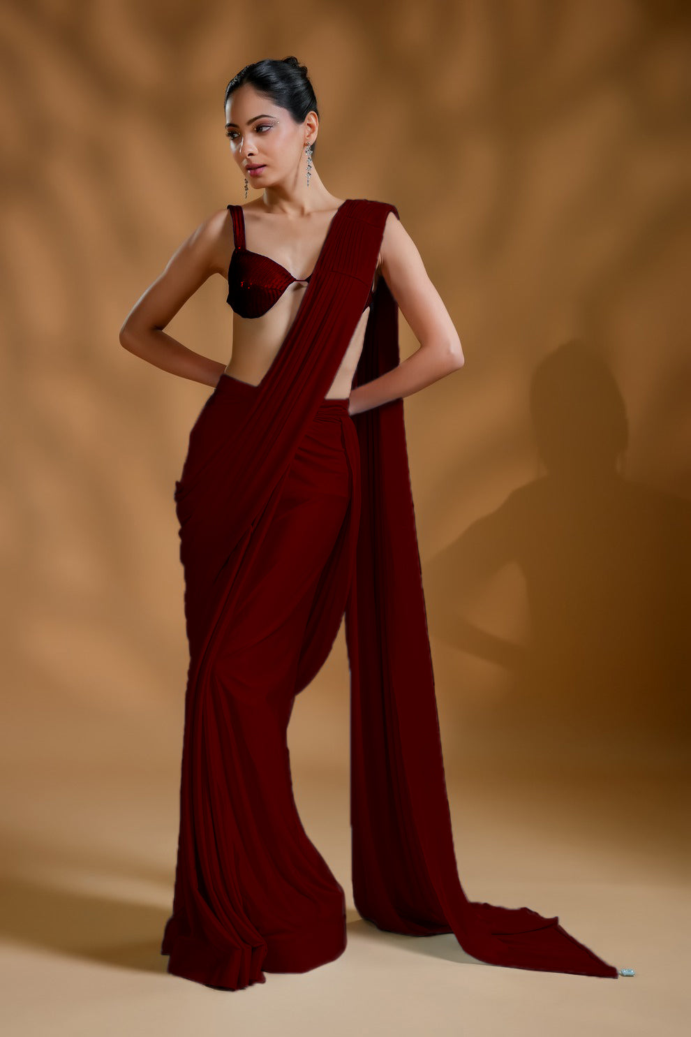 Premium Designer Red Ready-to-Wear Saree with Unique Drape in Luxe Fabric