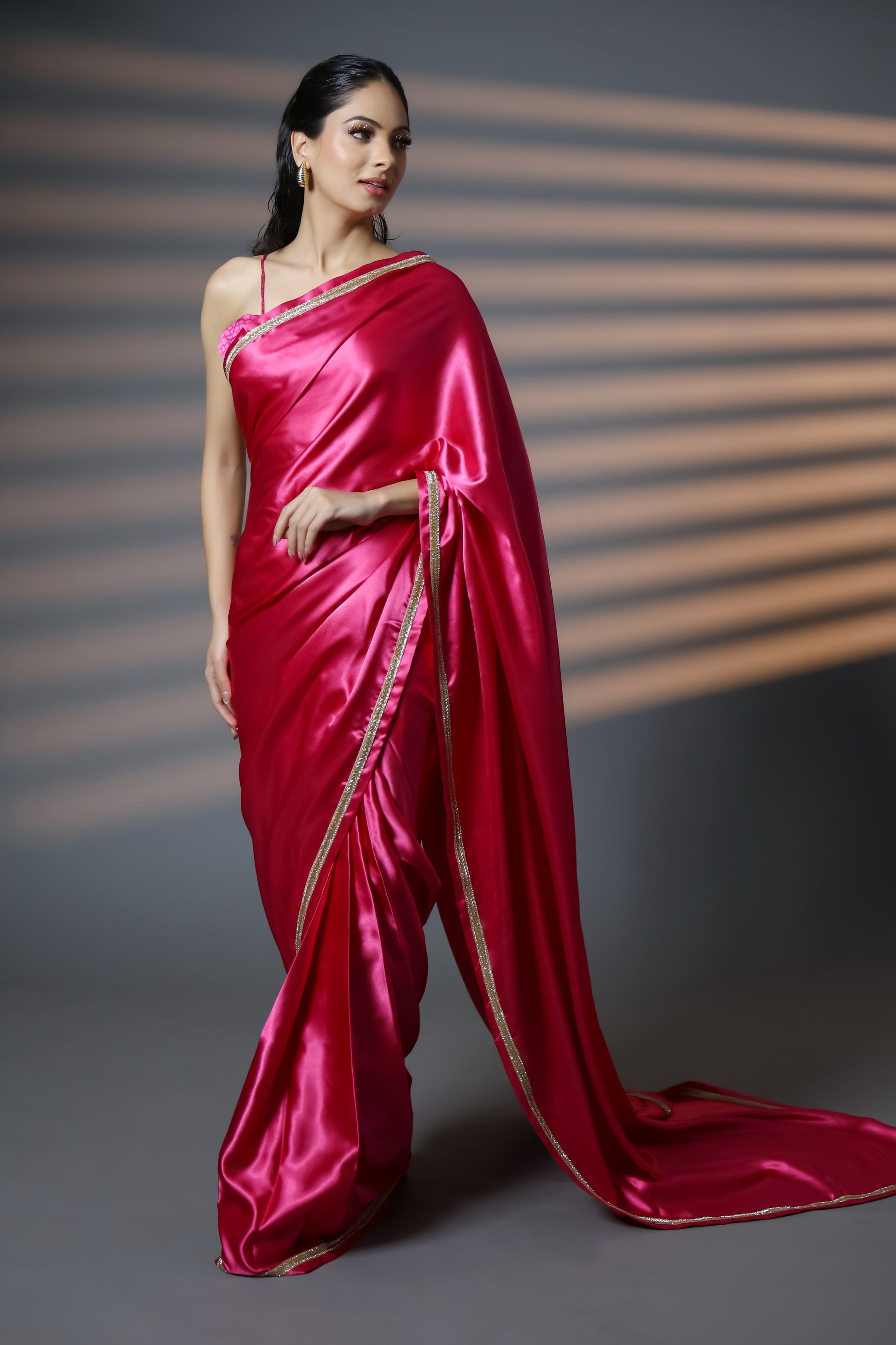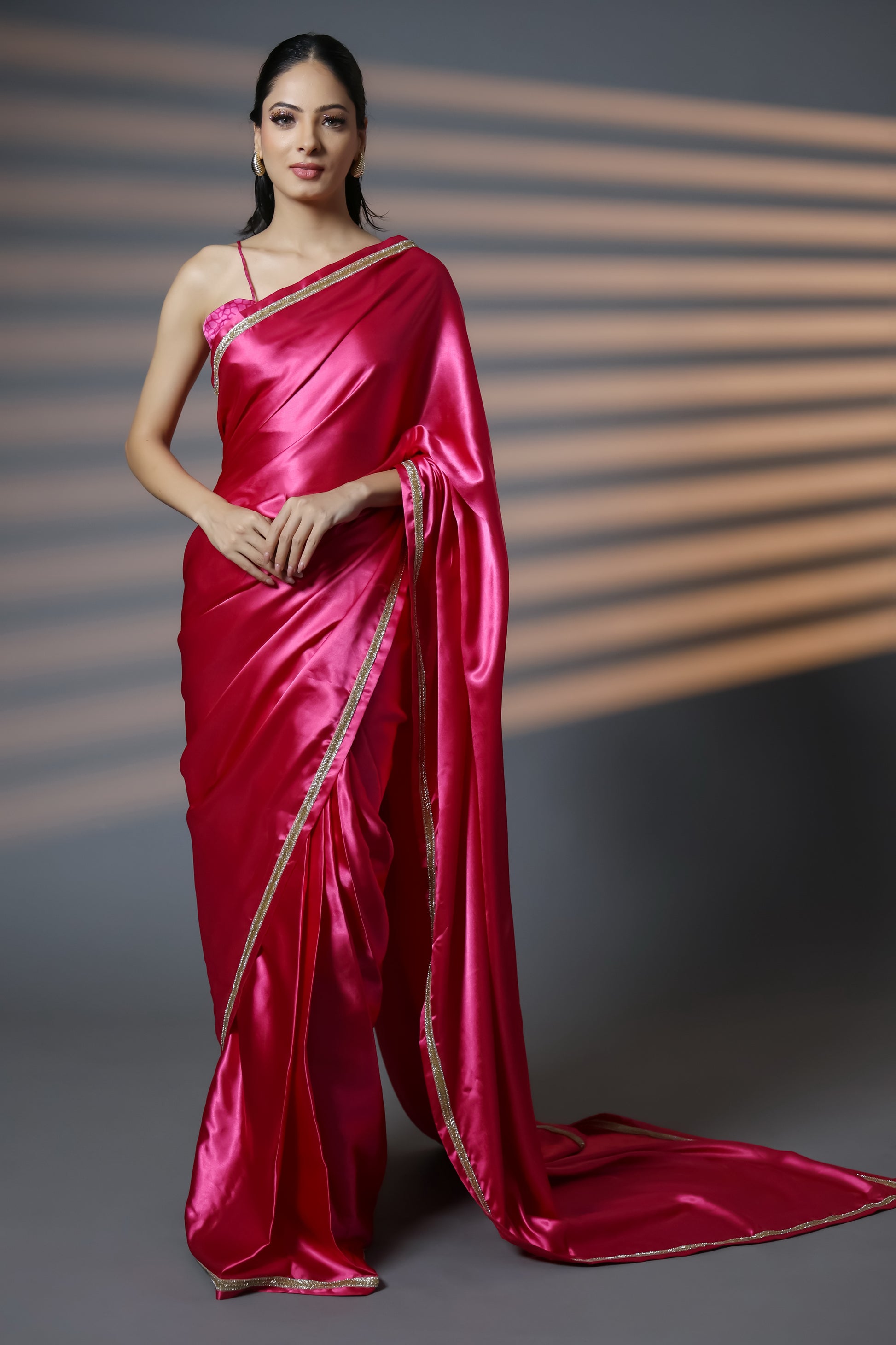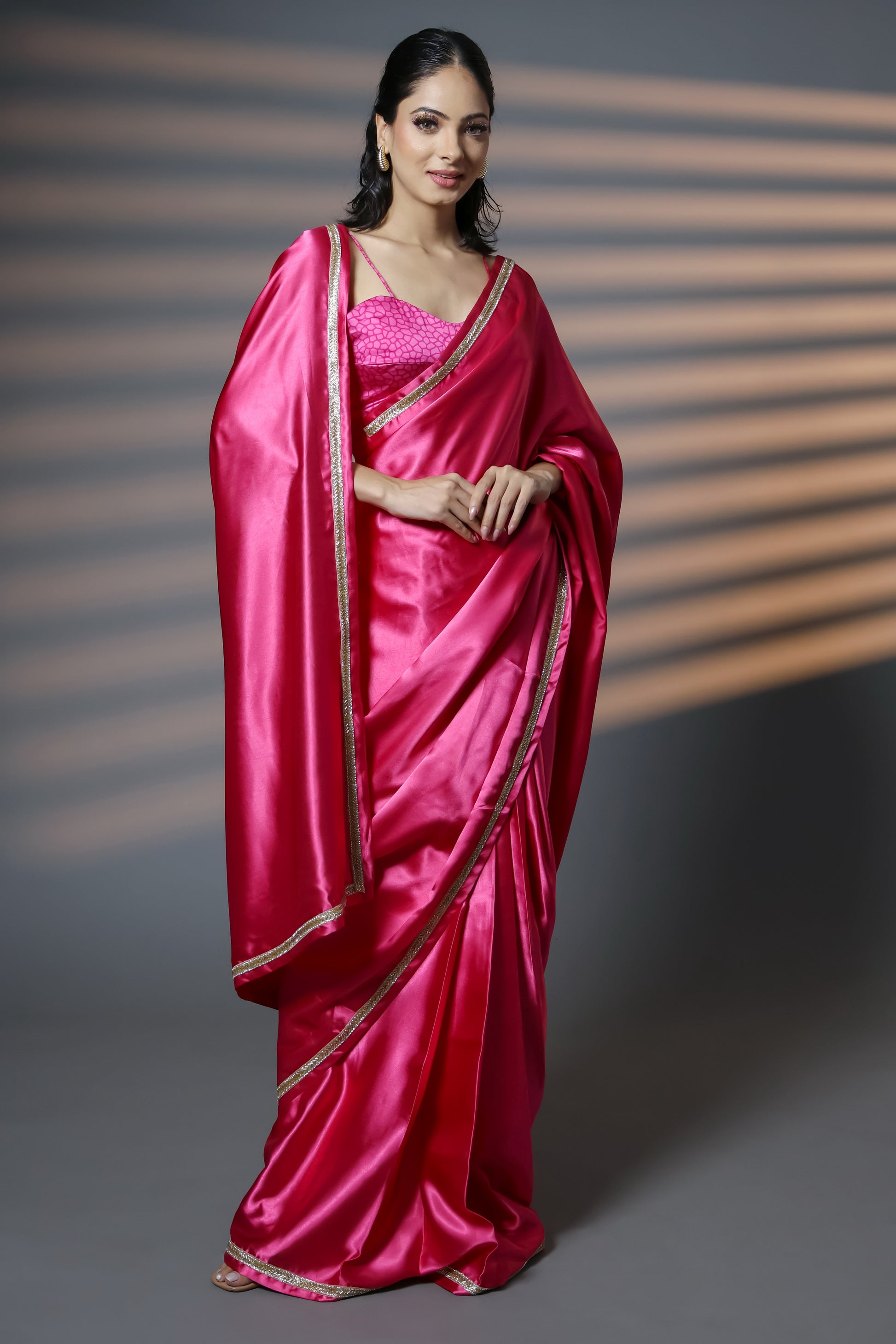 Radiant Pink and Golden Embellished Premium Saree with Unstitched Blouse
