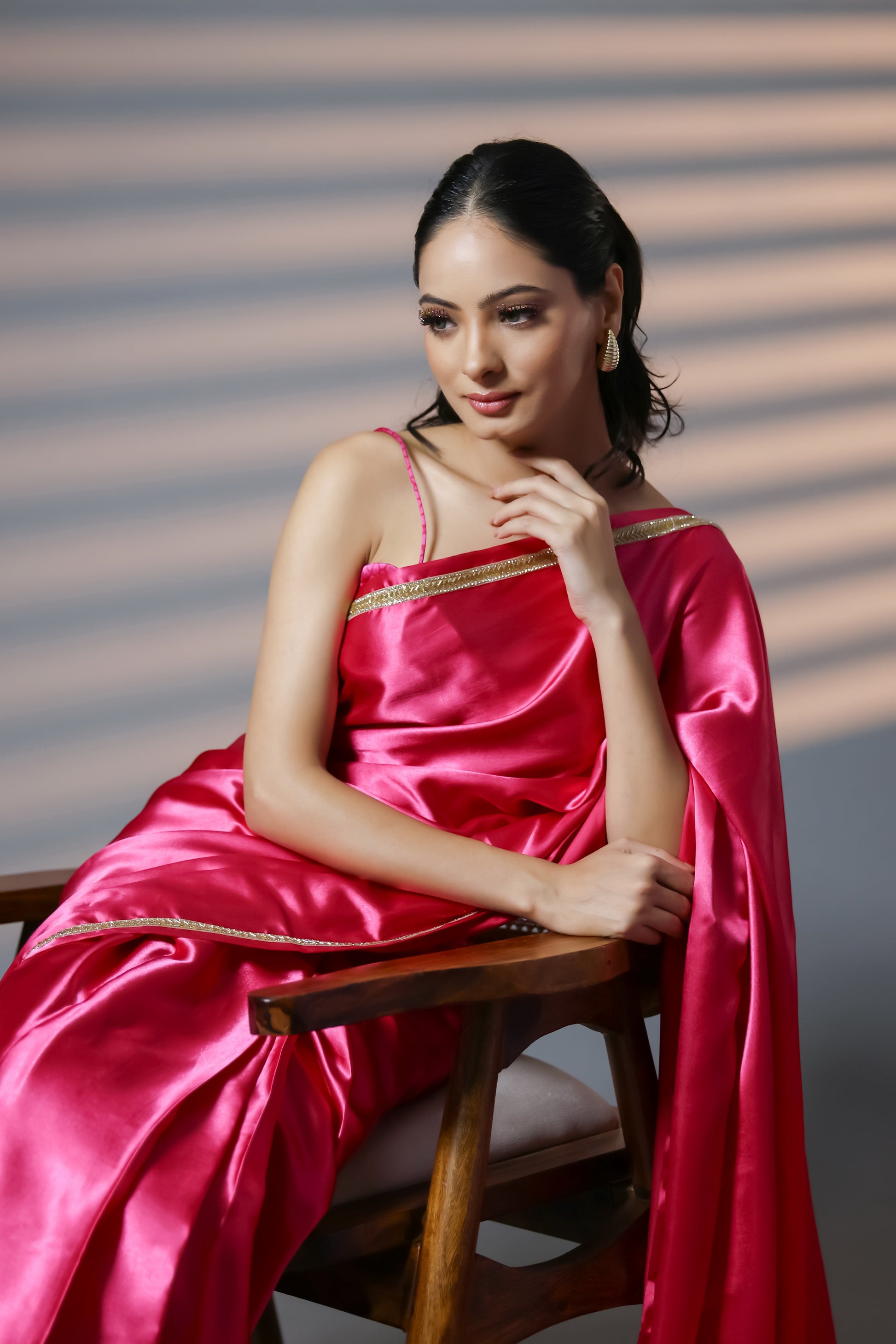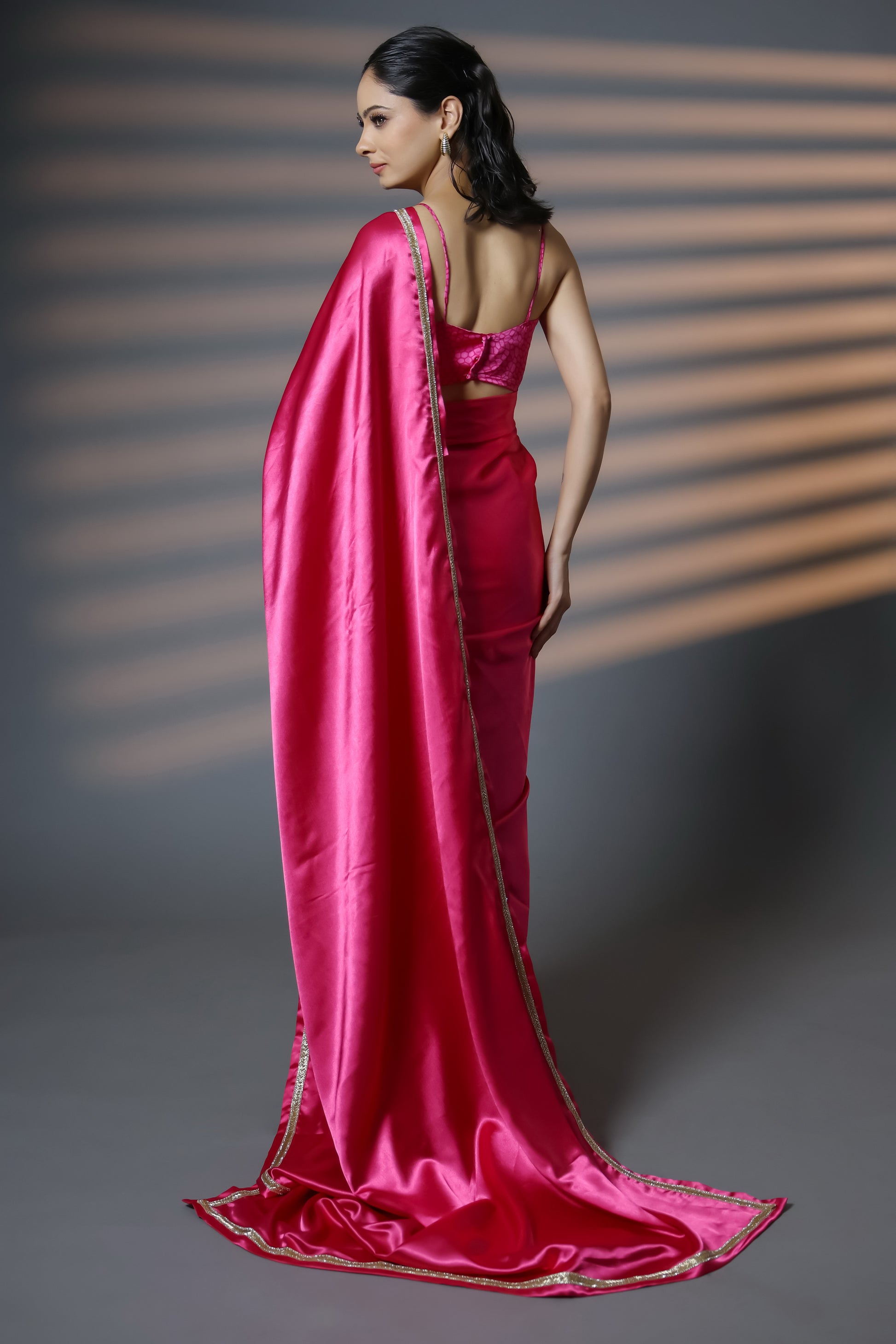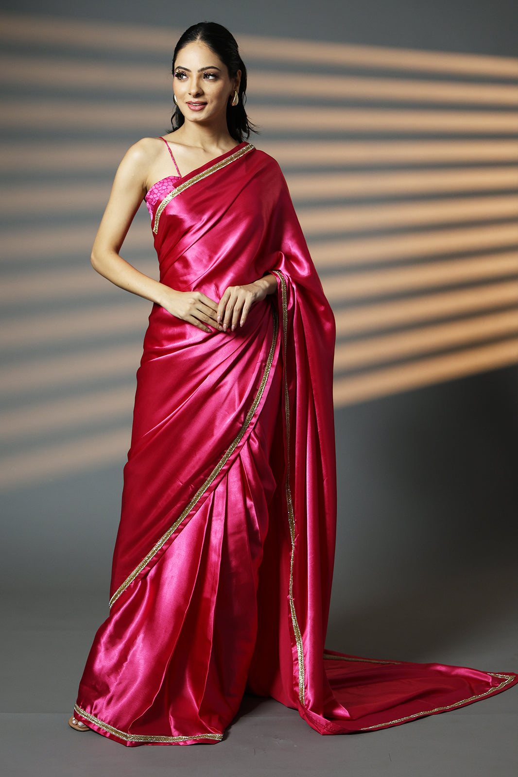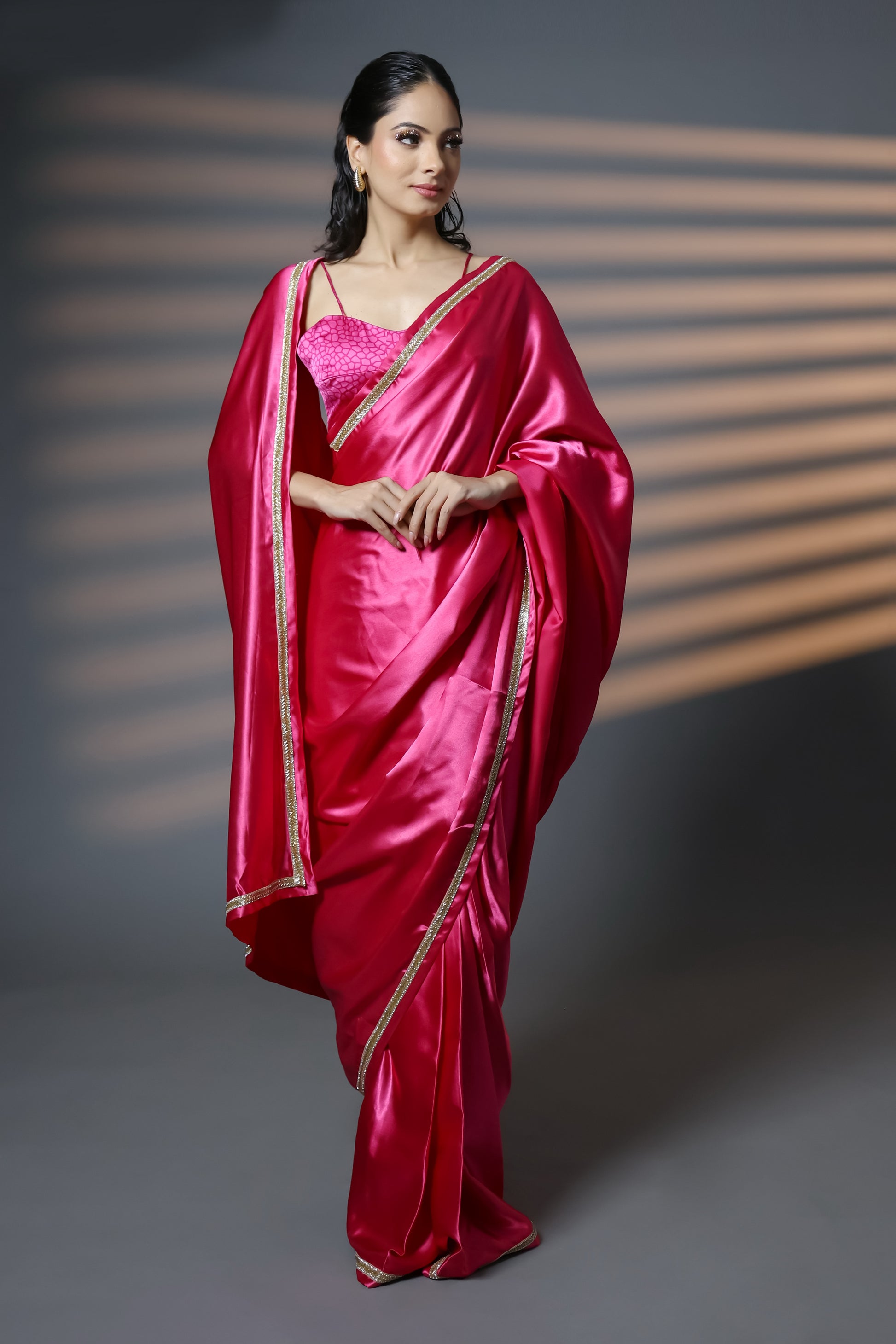 Radiant Pink and Golden Embellished Premium Saree with Unstitched Blouse