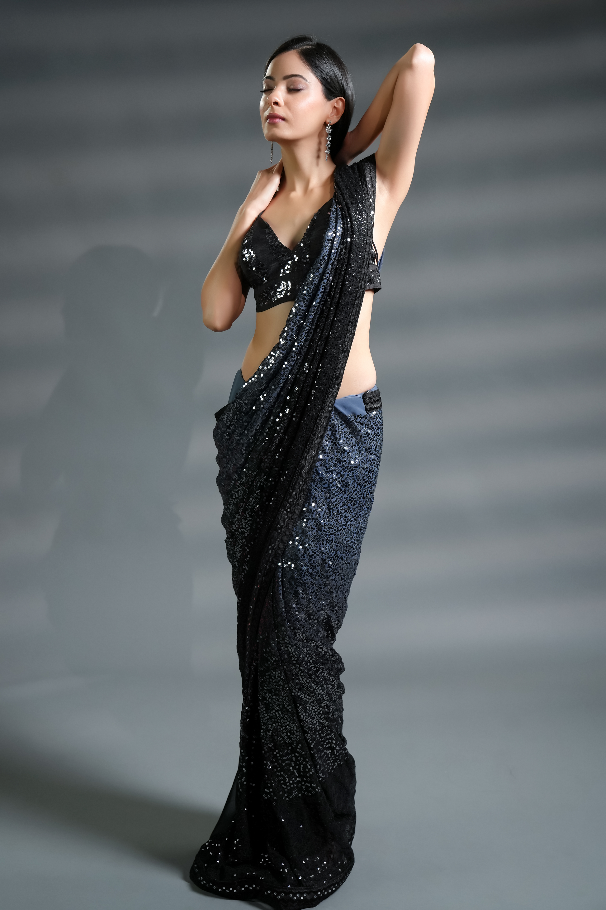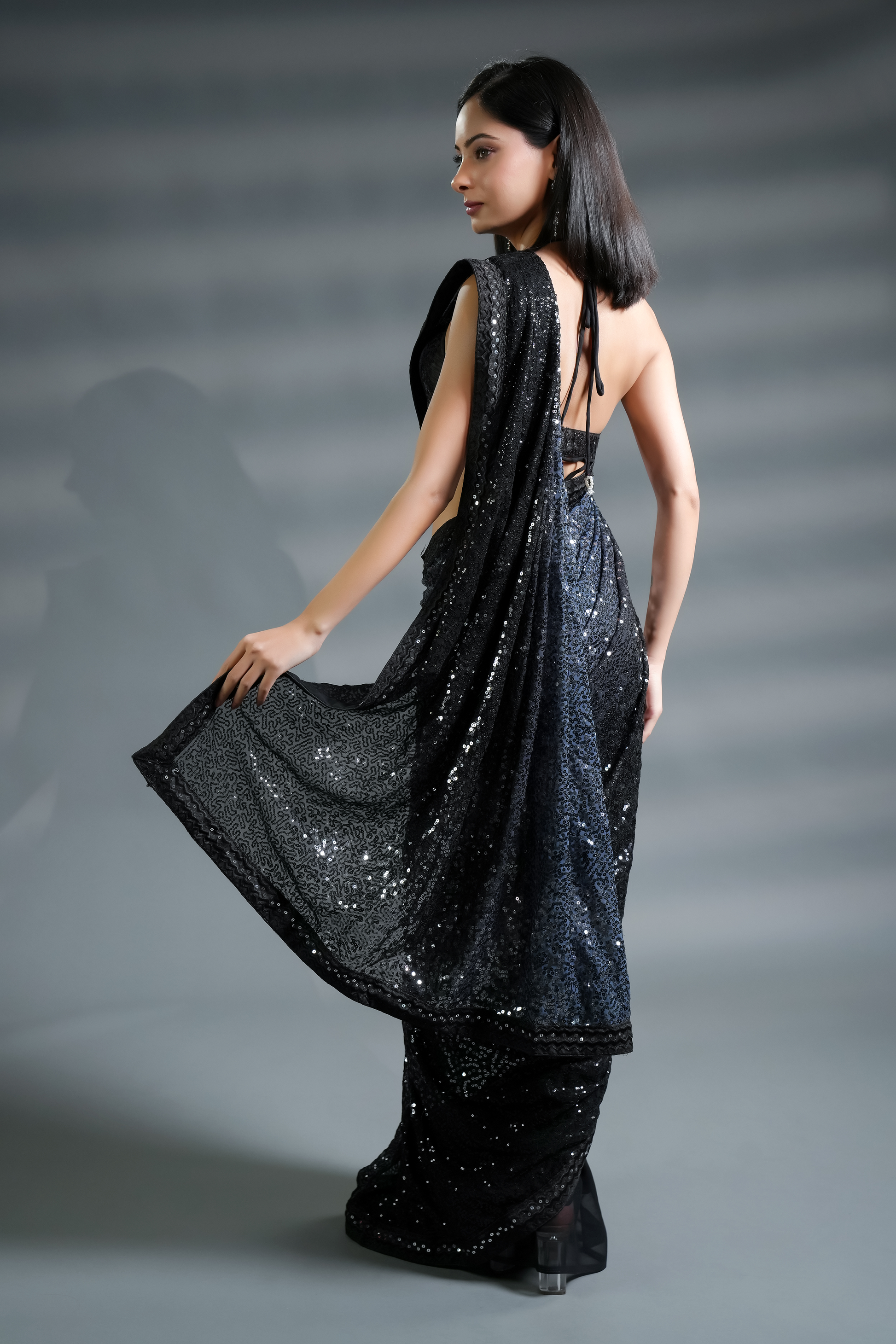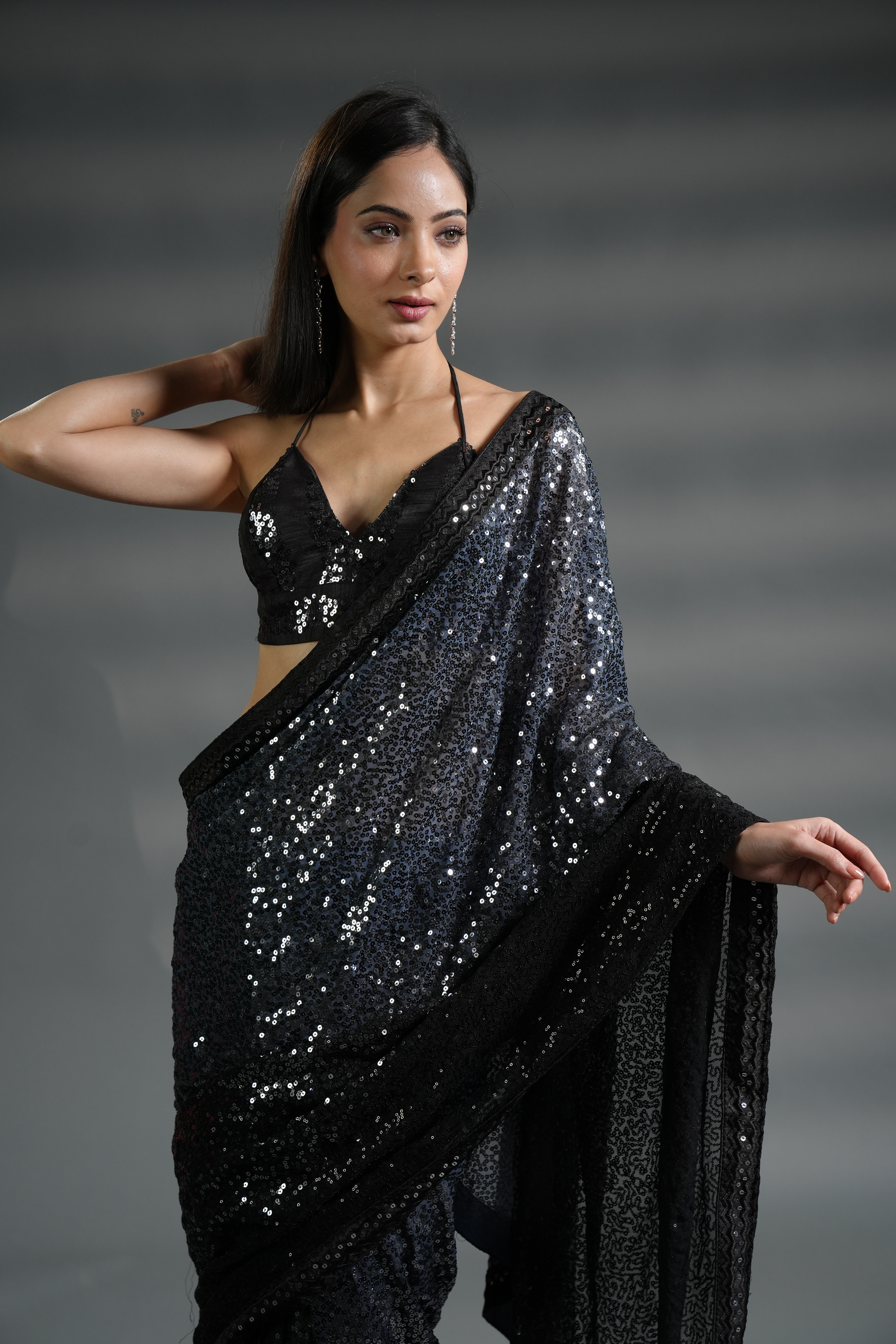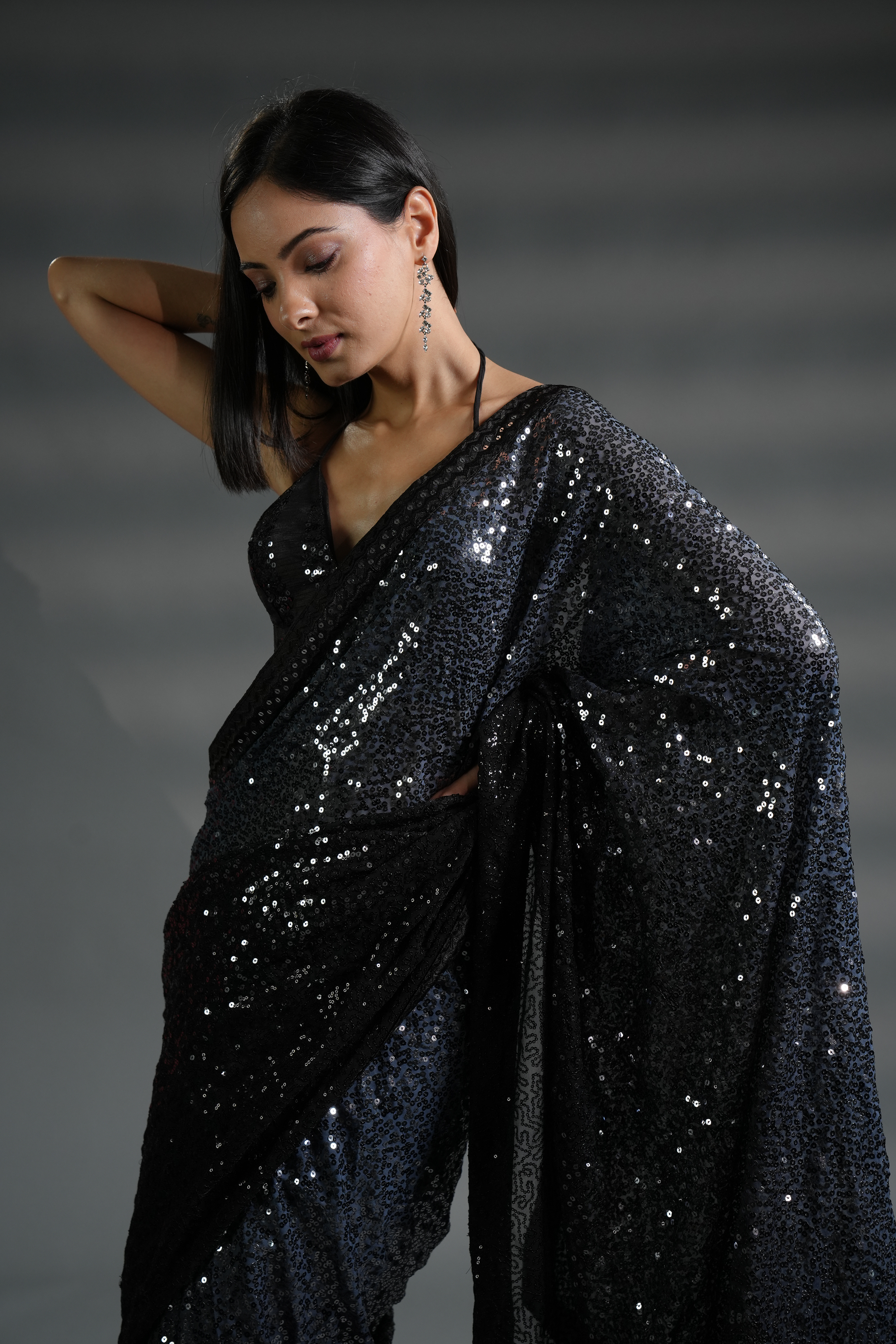 Ravishing Black Ready to Wear Sequin Saree and Blouse Fabric