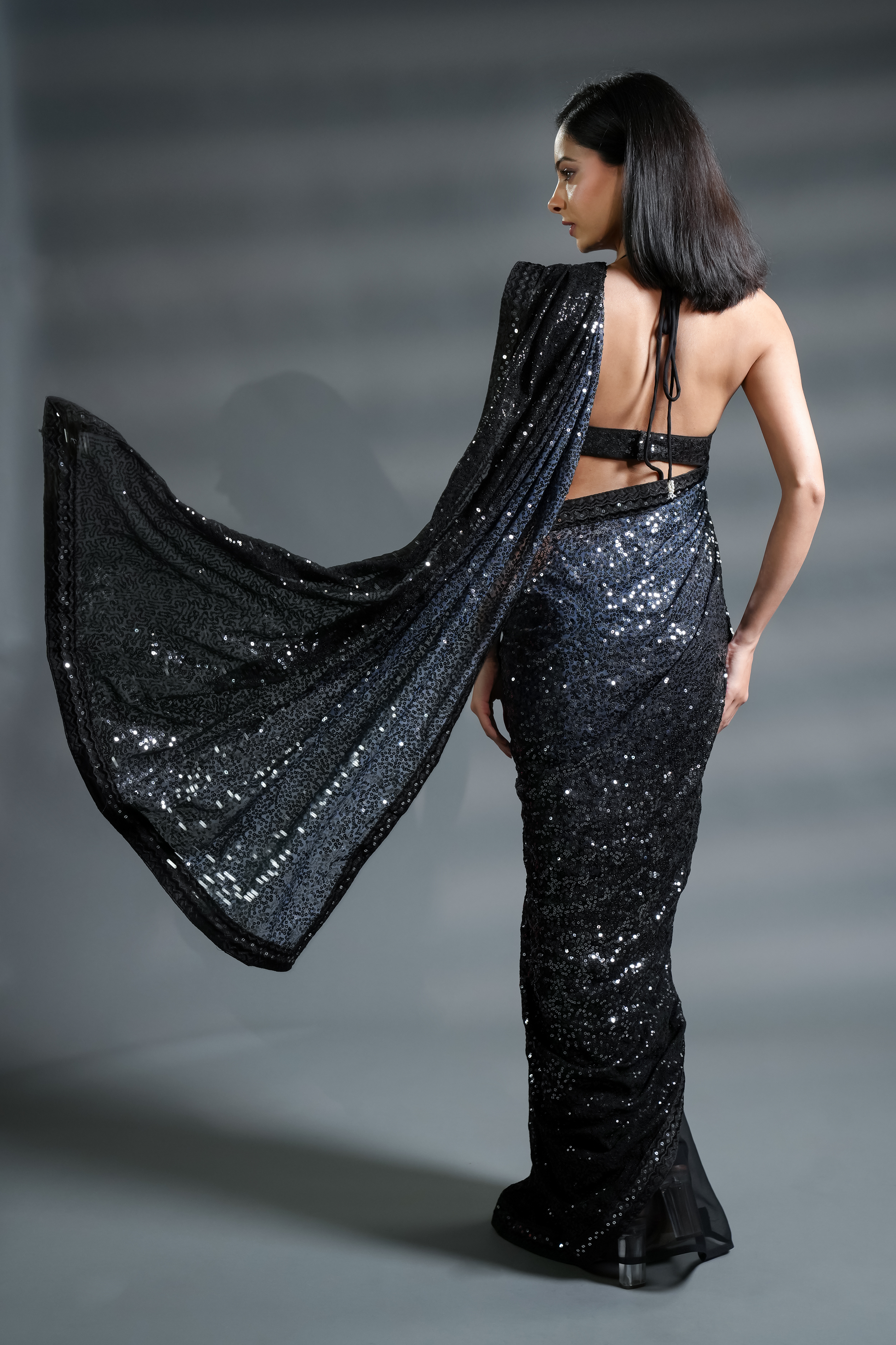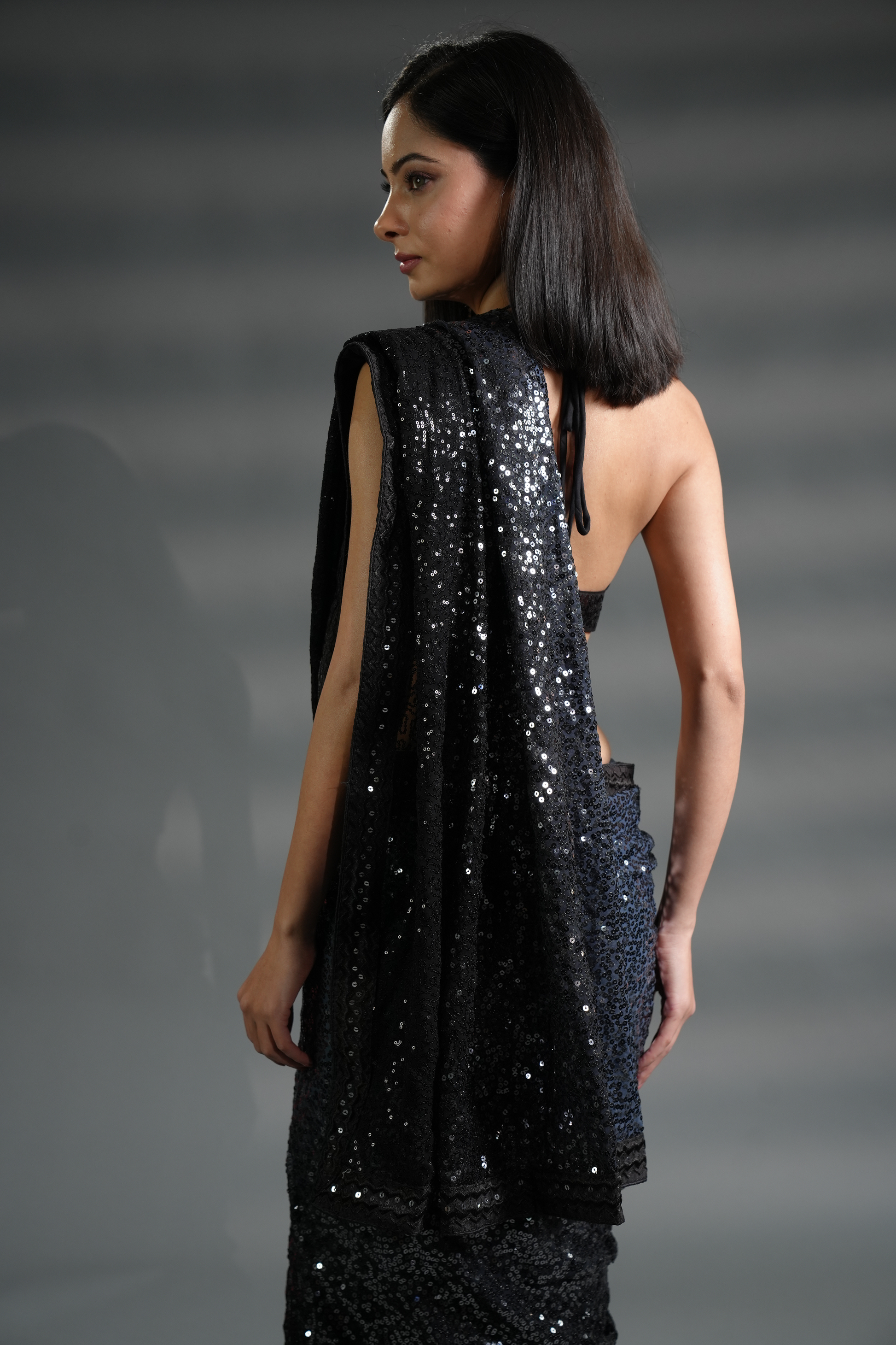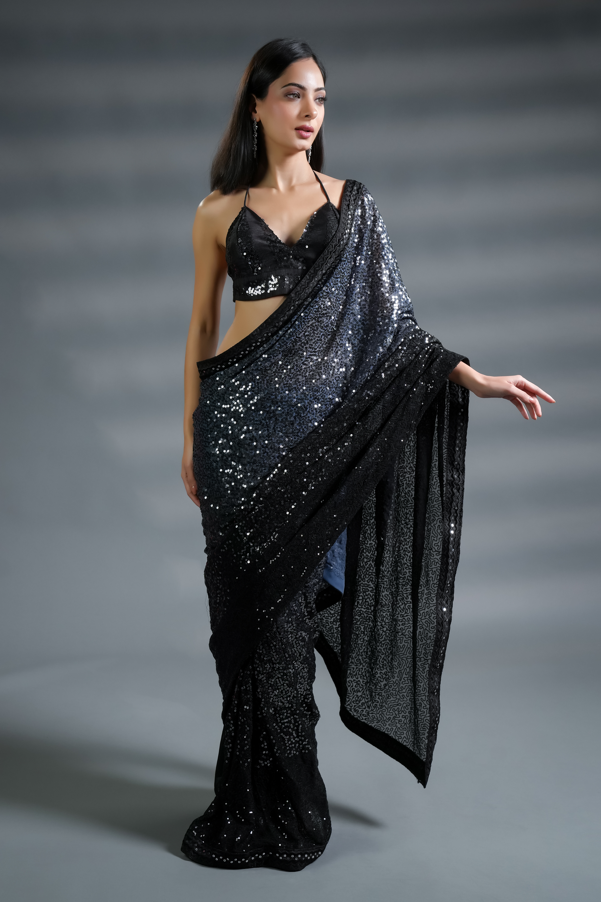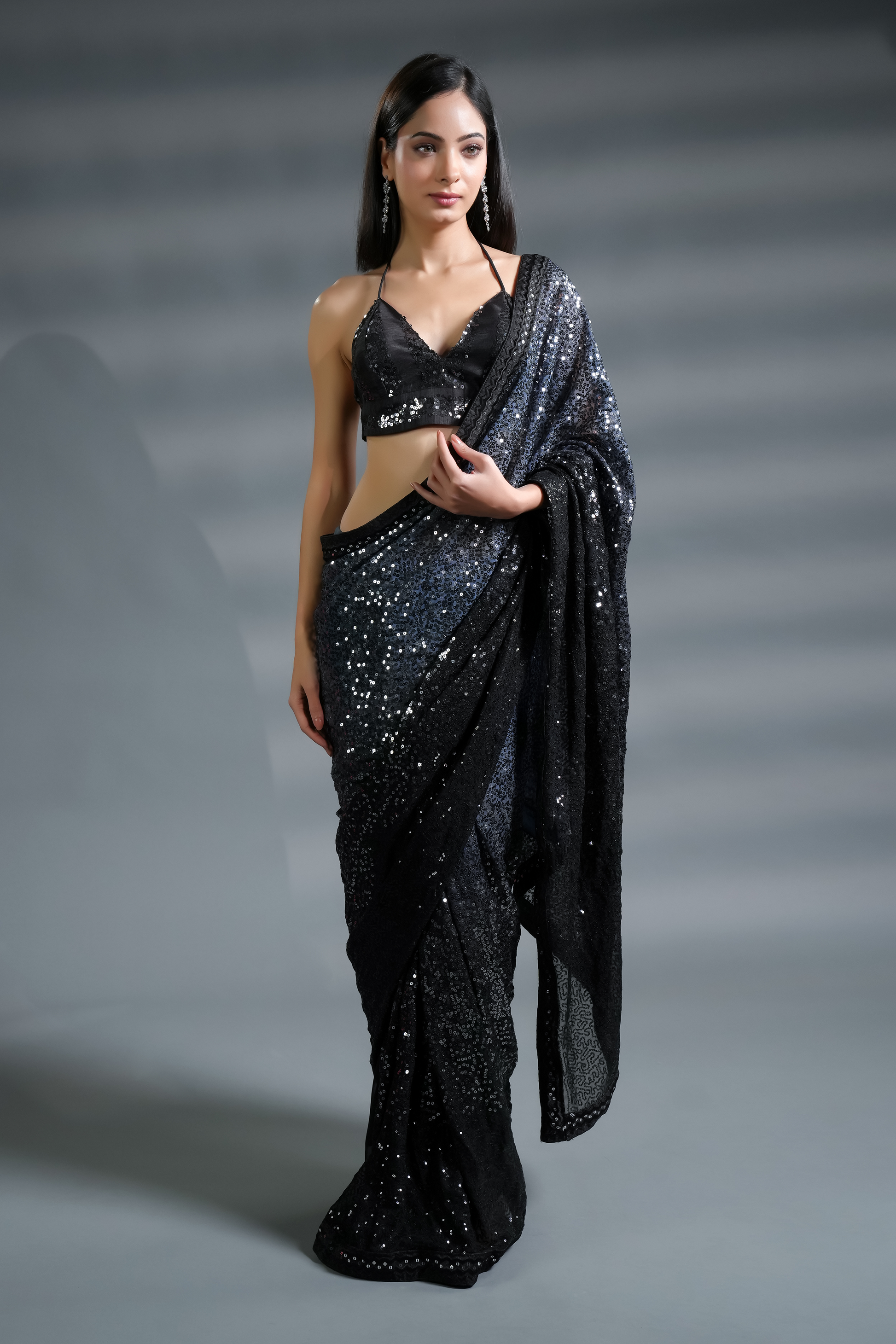 Ravishing Black Ready to Wear Sequin Saree and Blouse Fabric
