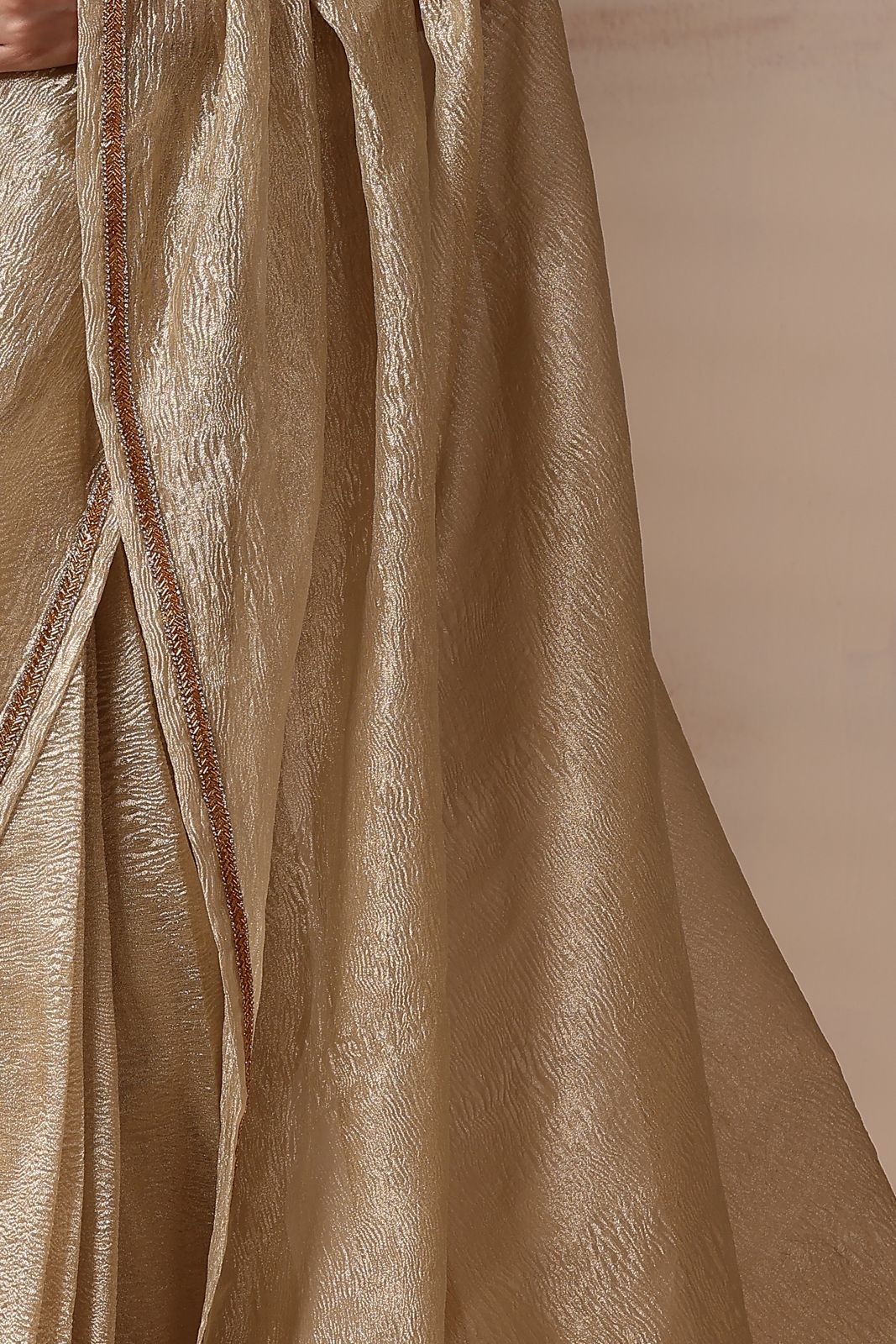 Regal Silver Gold Shimmer Embellished Crush Tissue Saree