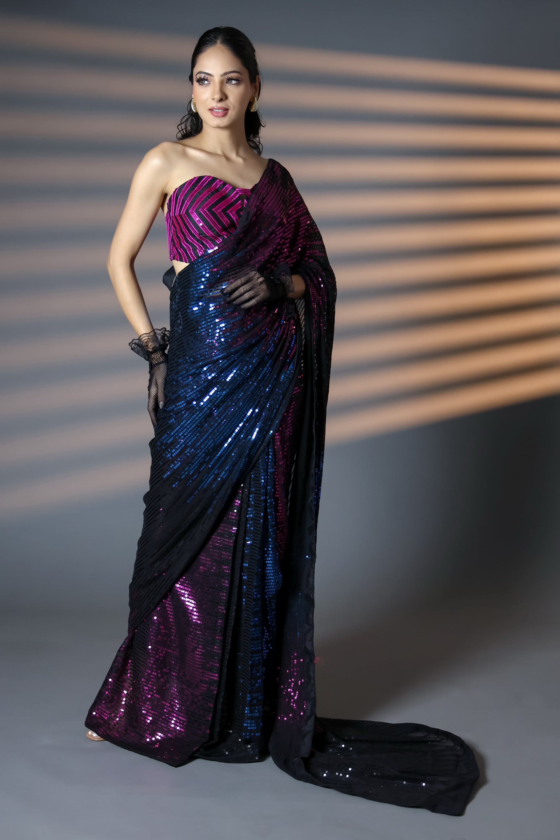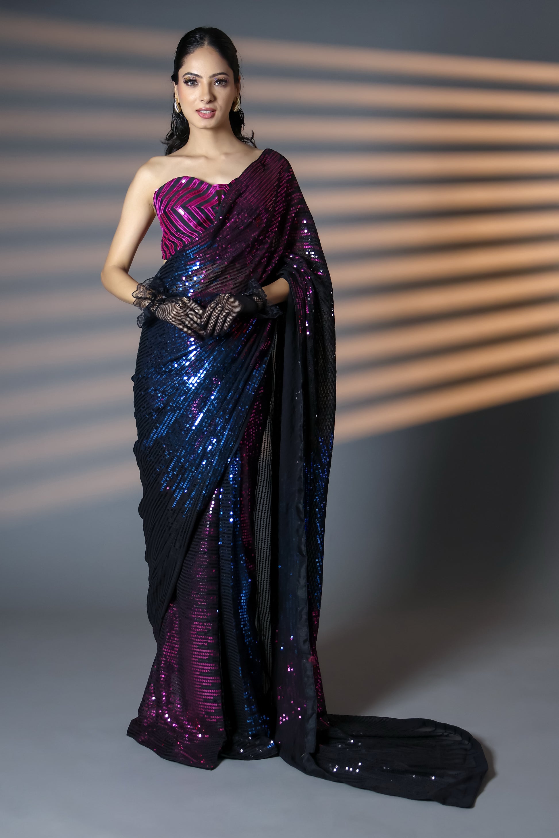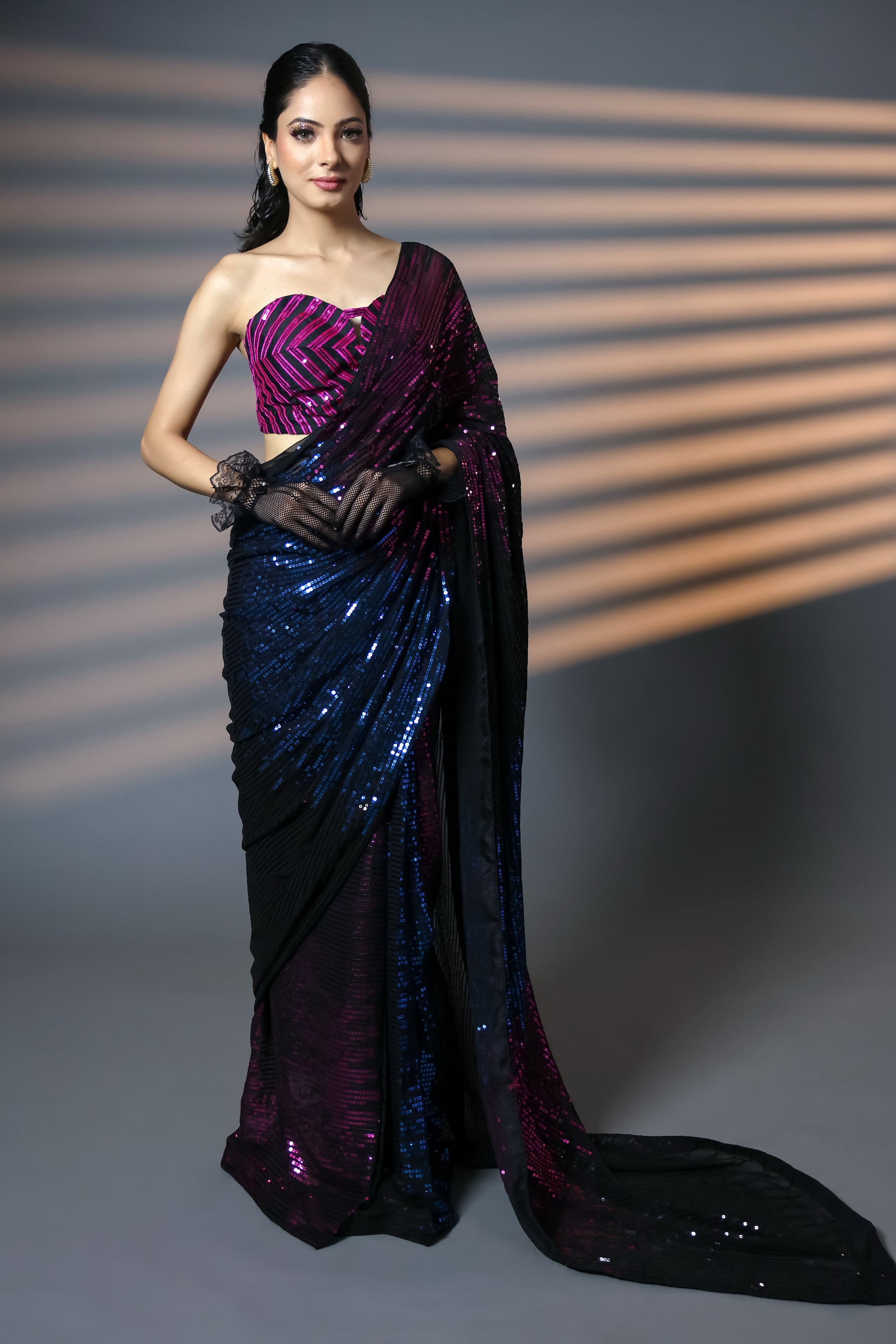 Royal Fantasy Luxe Sparkle Party-wear Saree with Unstitched Blouse