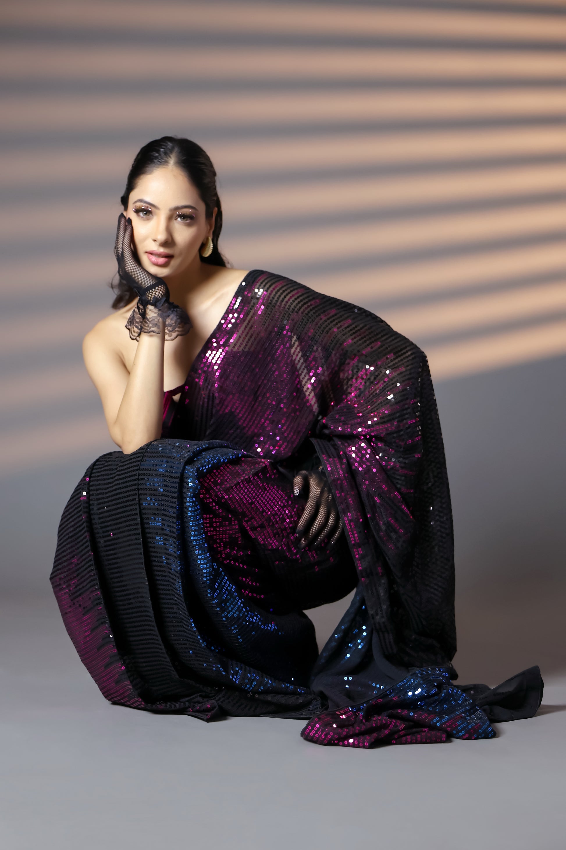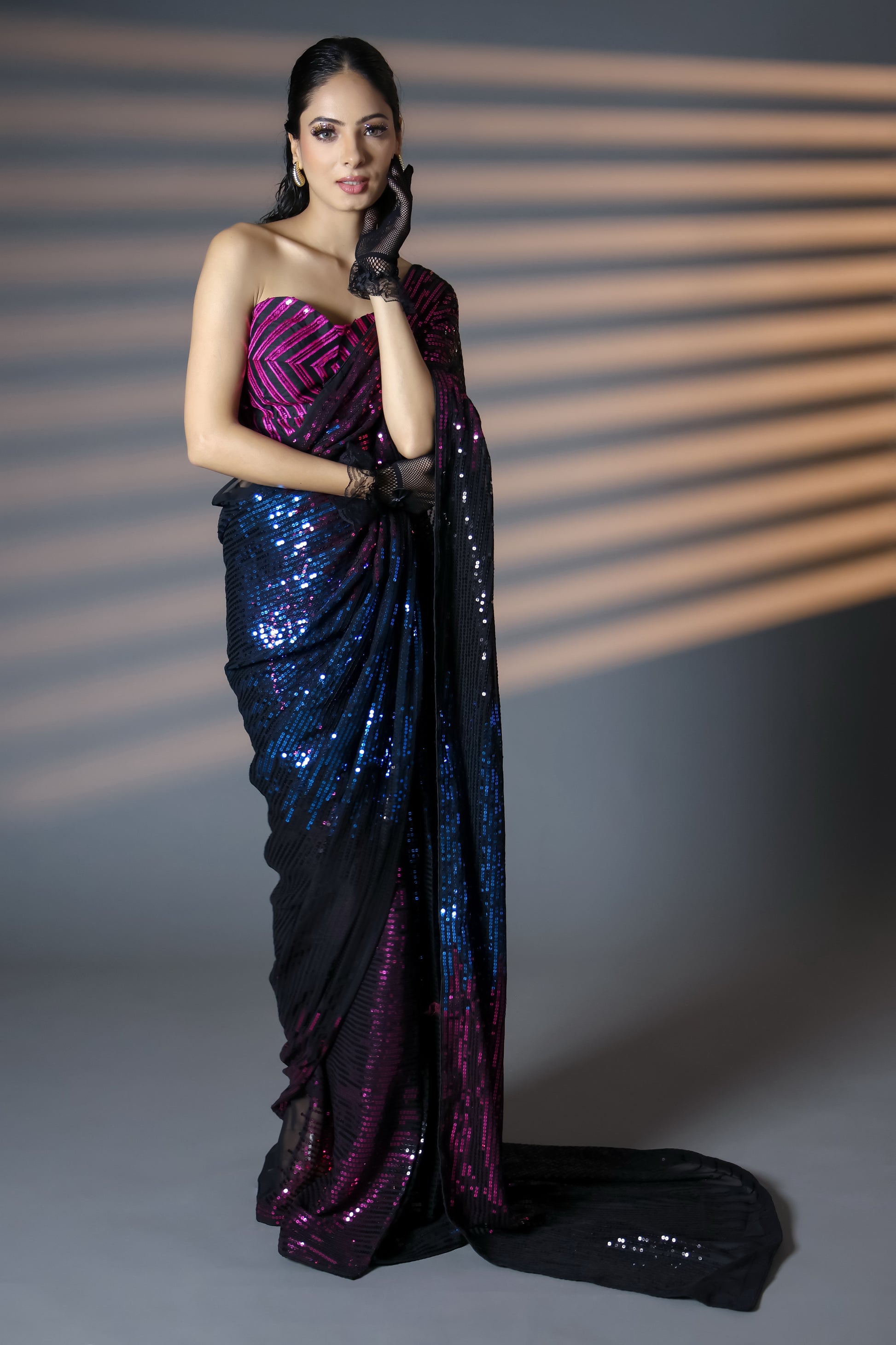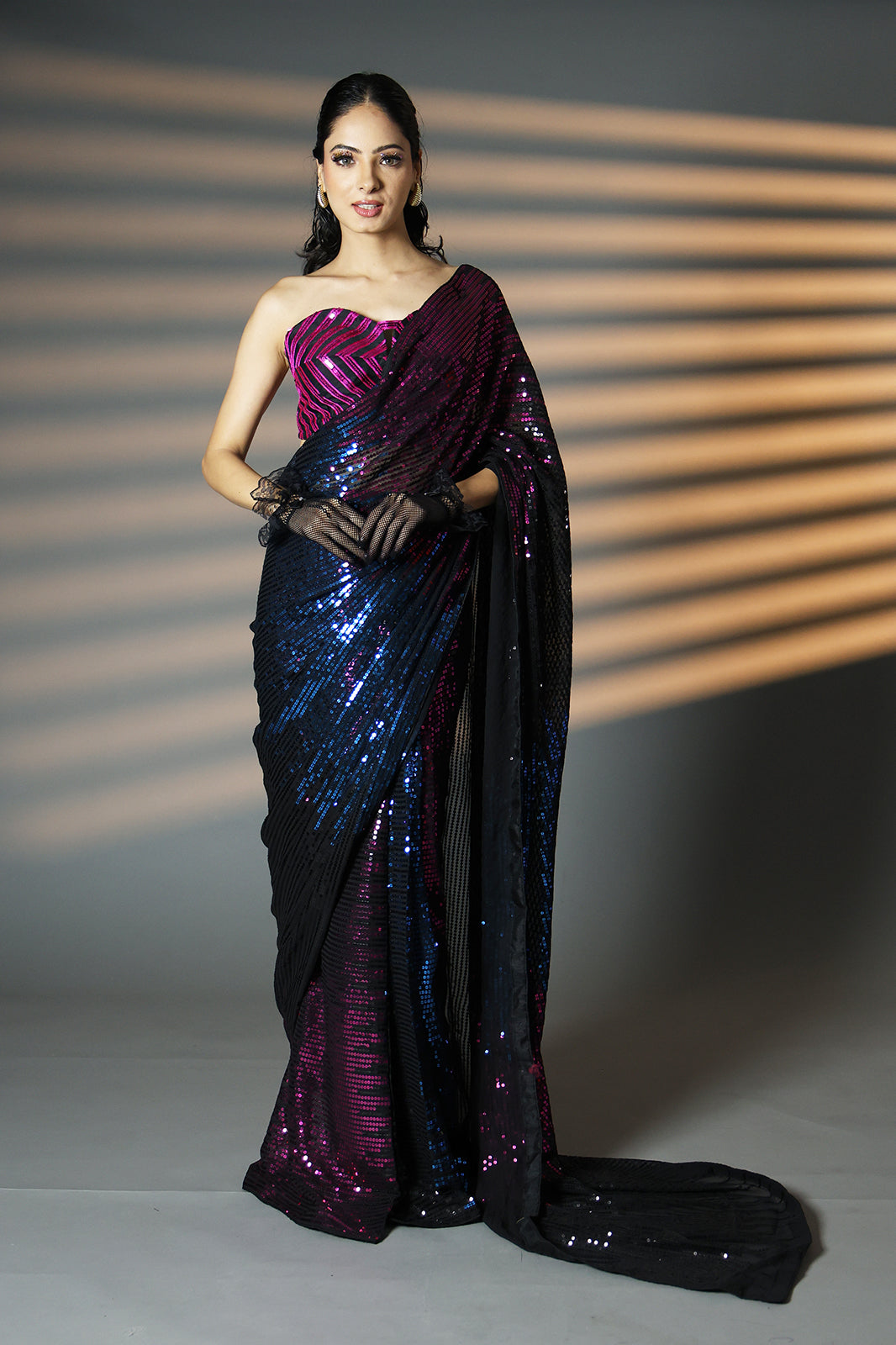 Royal Fantasy Luxe Sparkle Party-wear Saree with Unstitched Blouse
